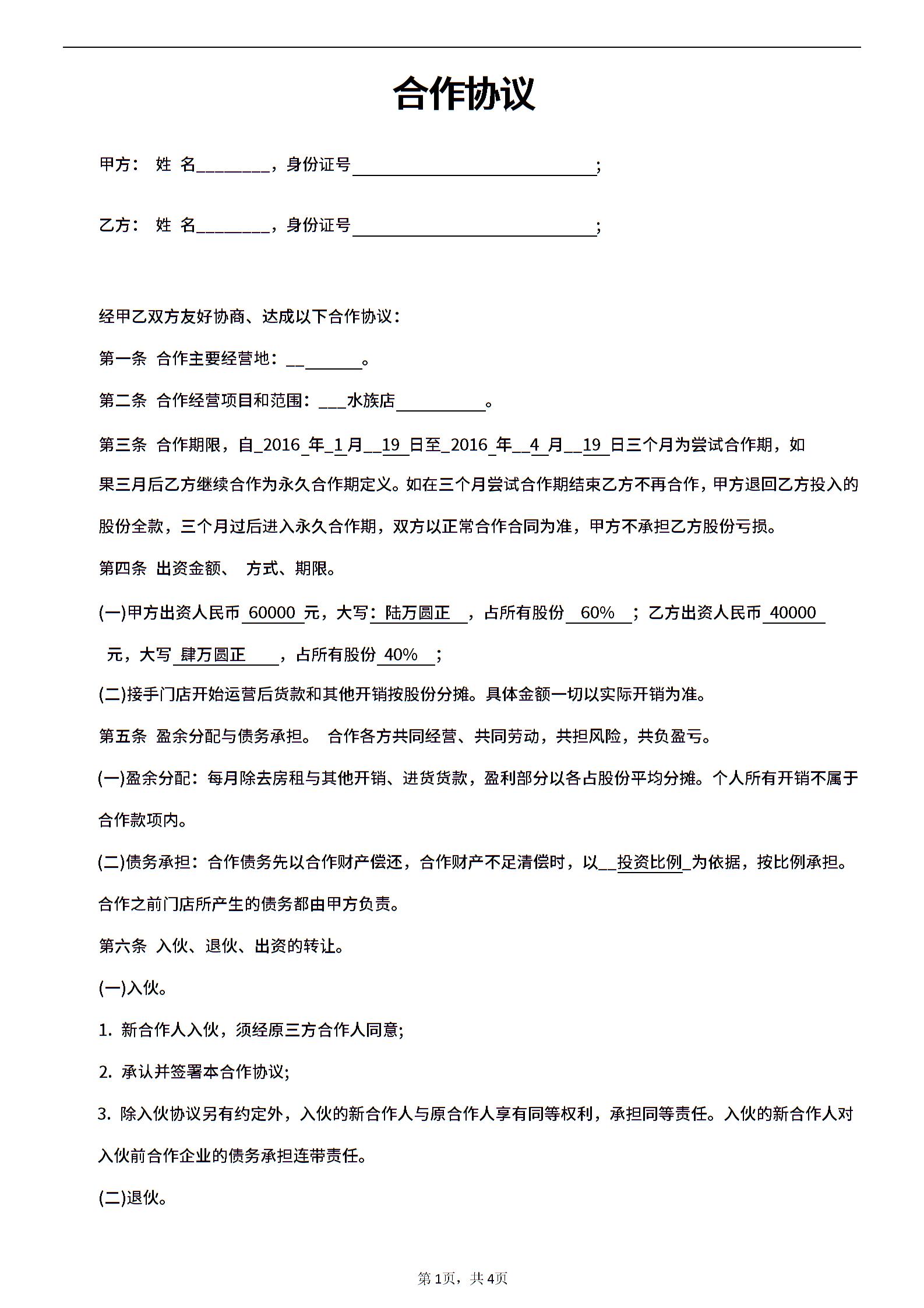 当前位置:量子办公 > 合同模板 > 合作合同 >
