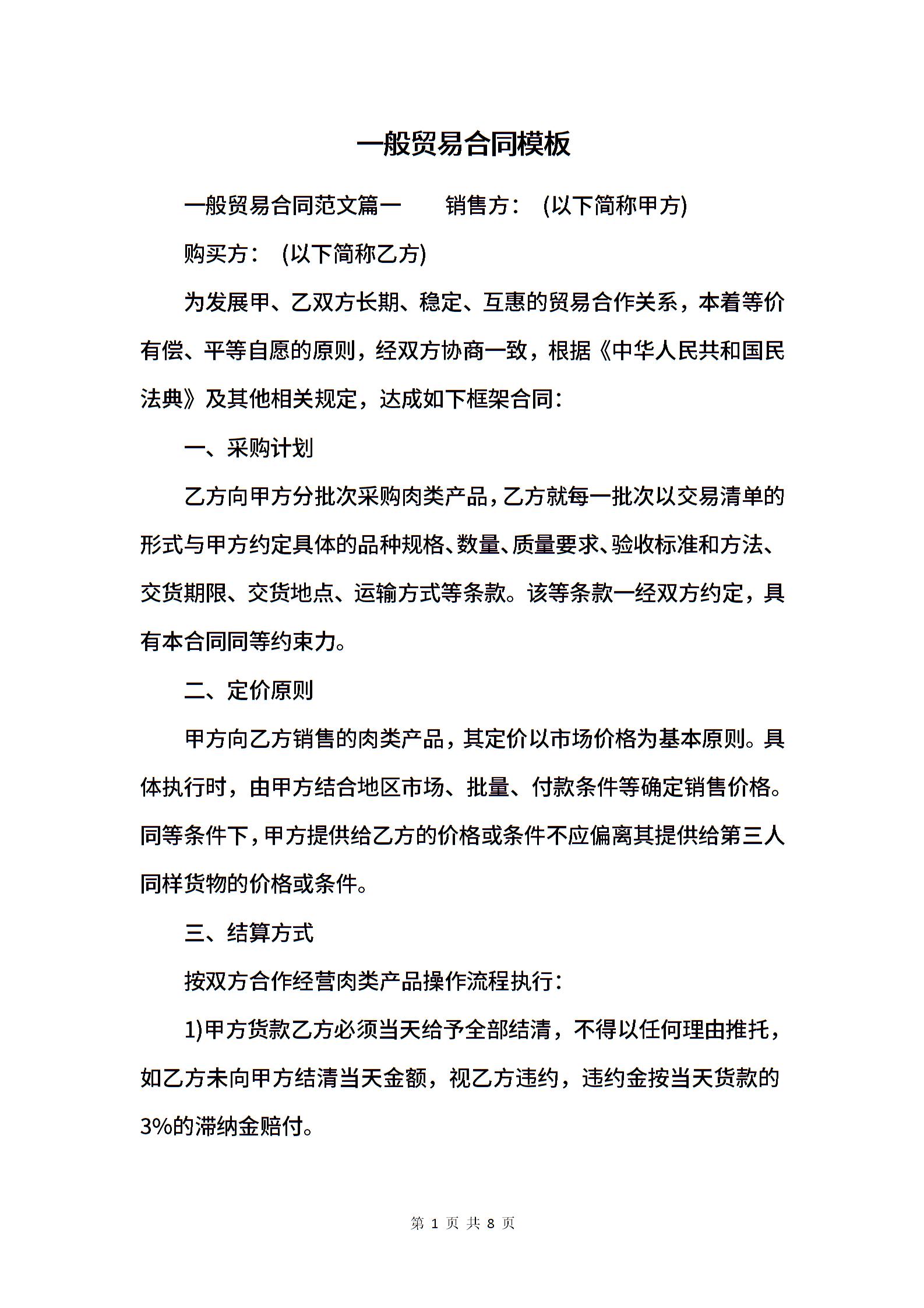 当前位置:量子办公 > 合同模板 > 贸易合同 >