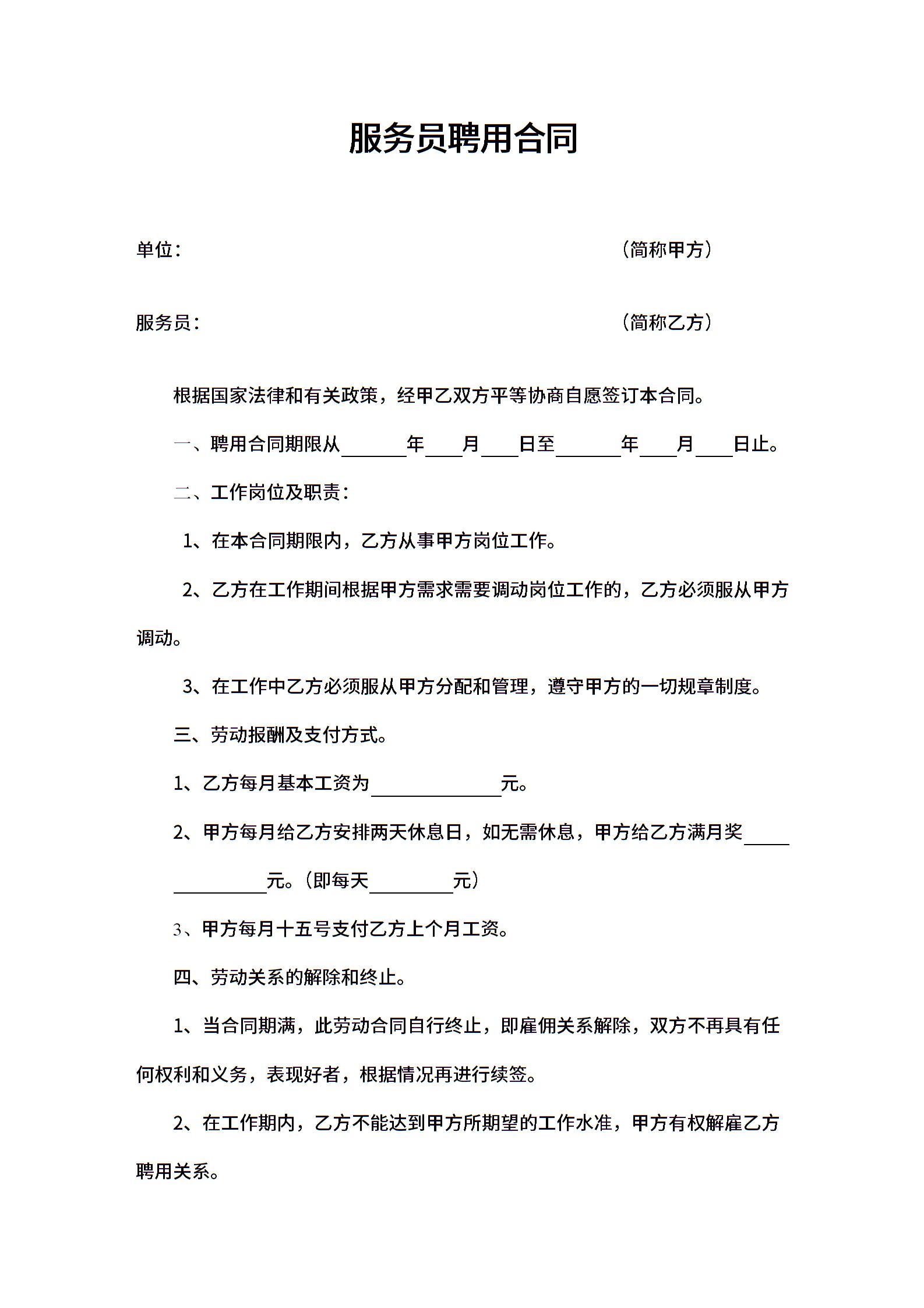 服务员聘用合同.doc