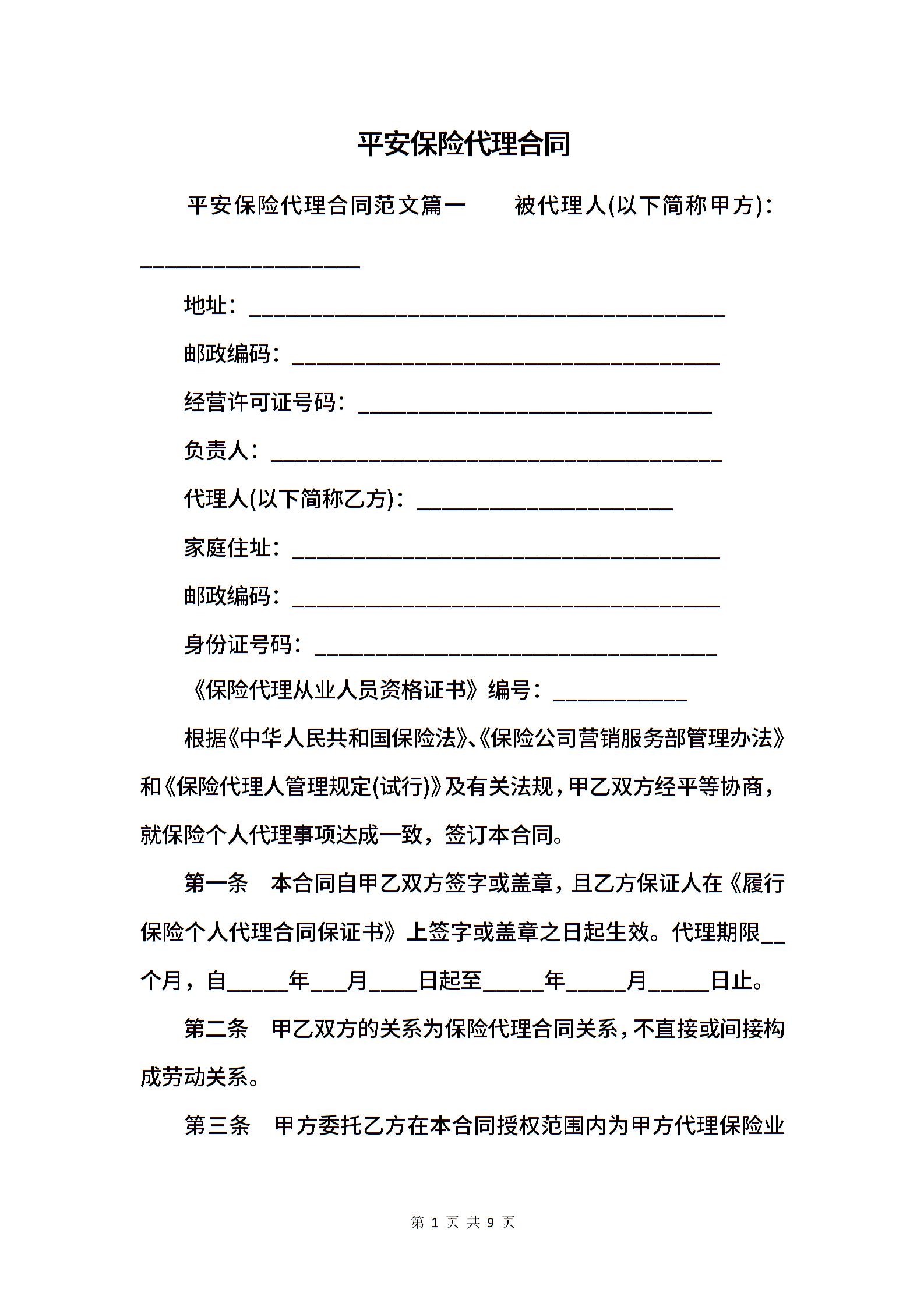 平安保险代理合同.docx