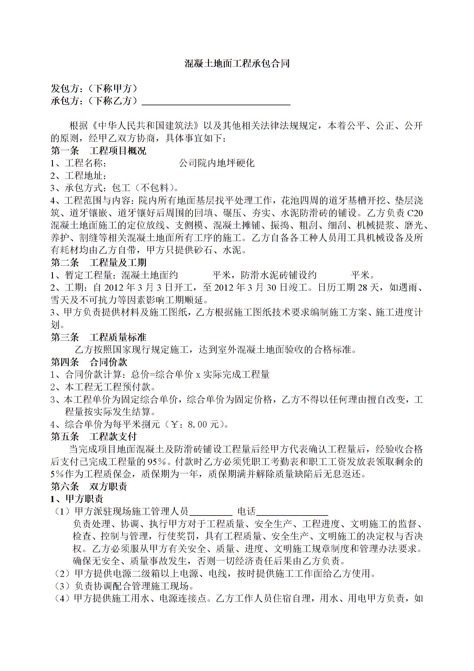 混凝土场坪硬化工程承包合同律师拟定版本.docx