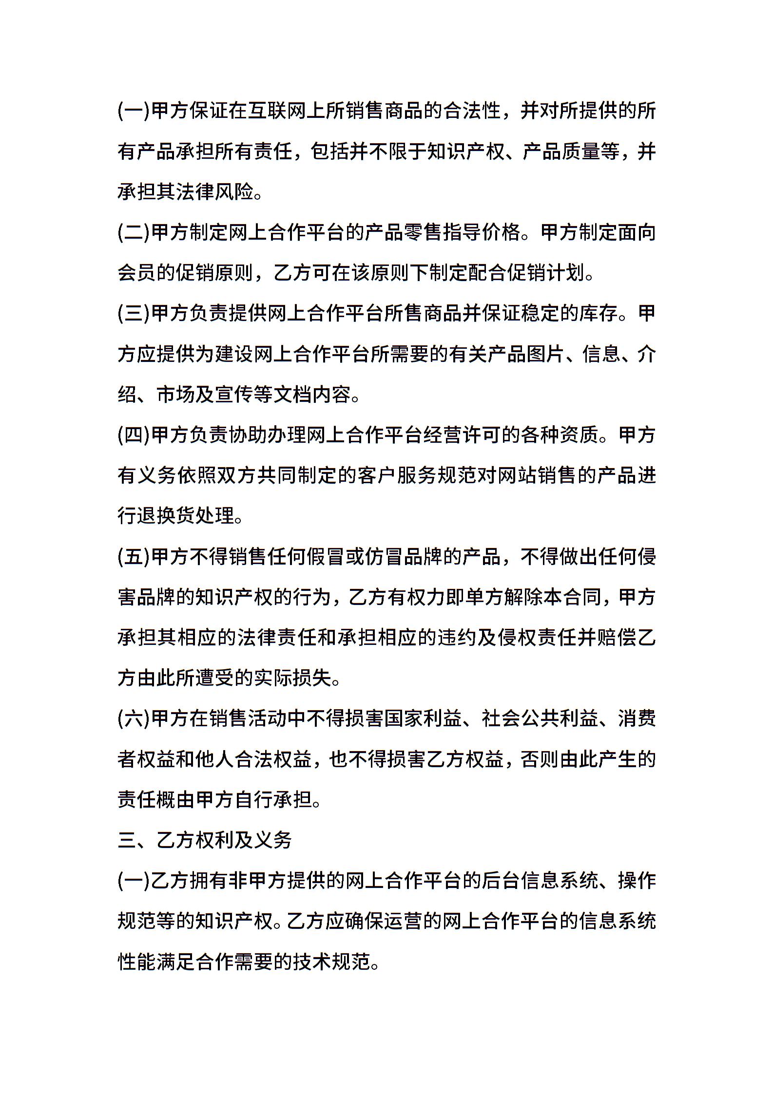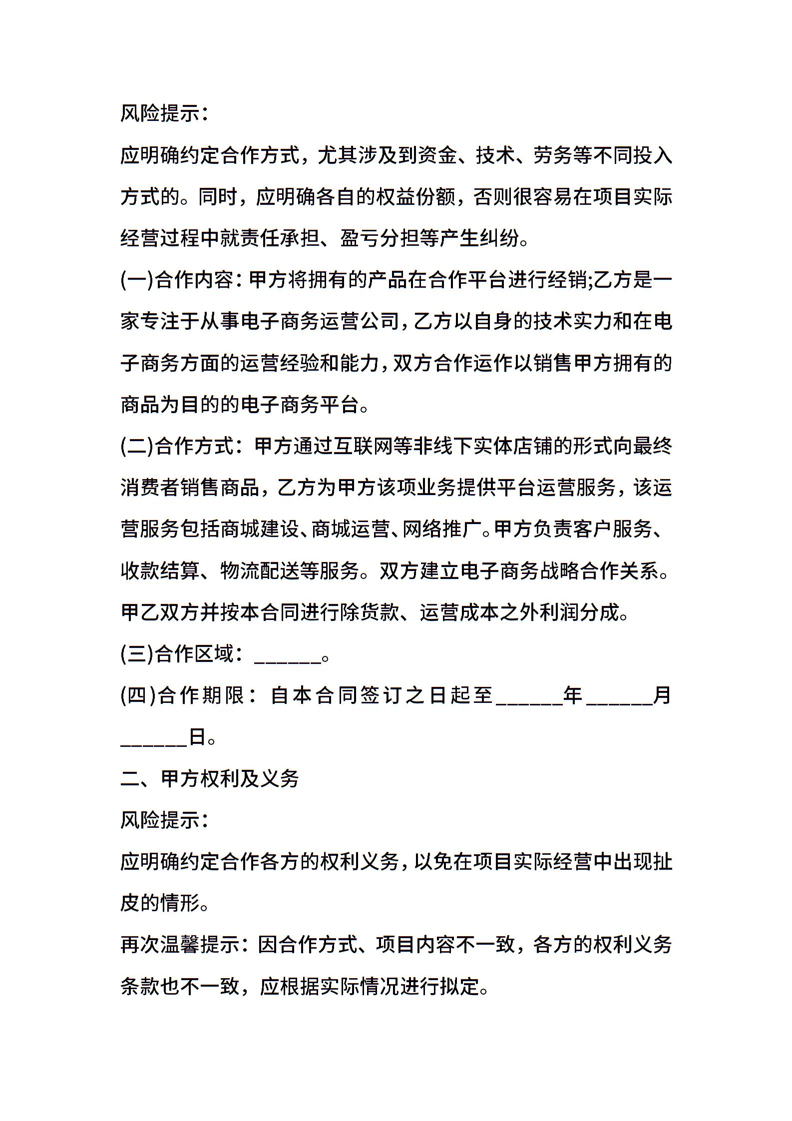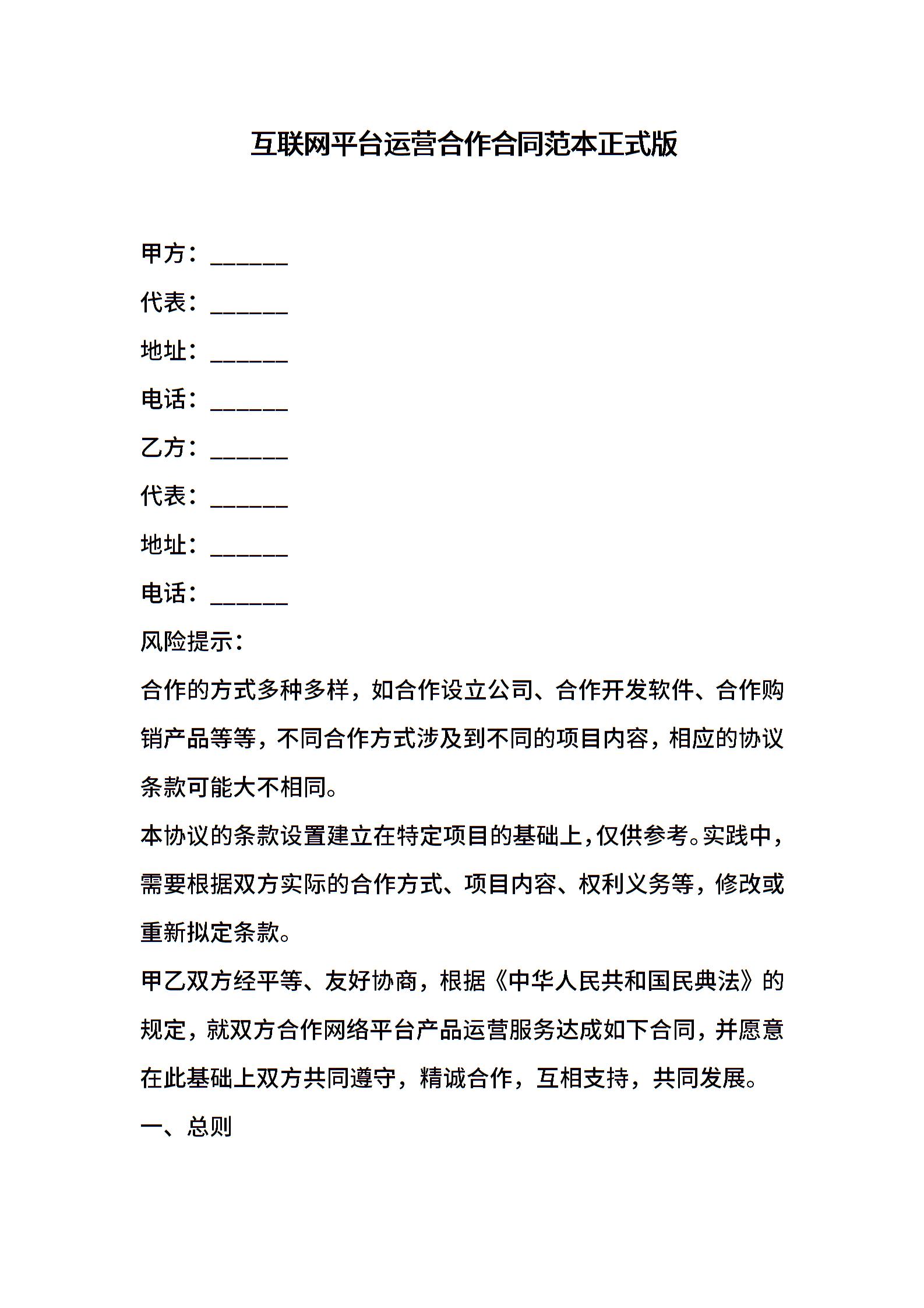 互联网平台运营合作合同范本正式版