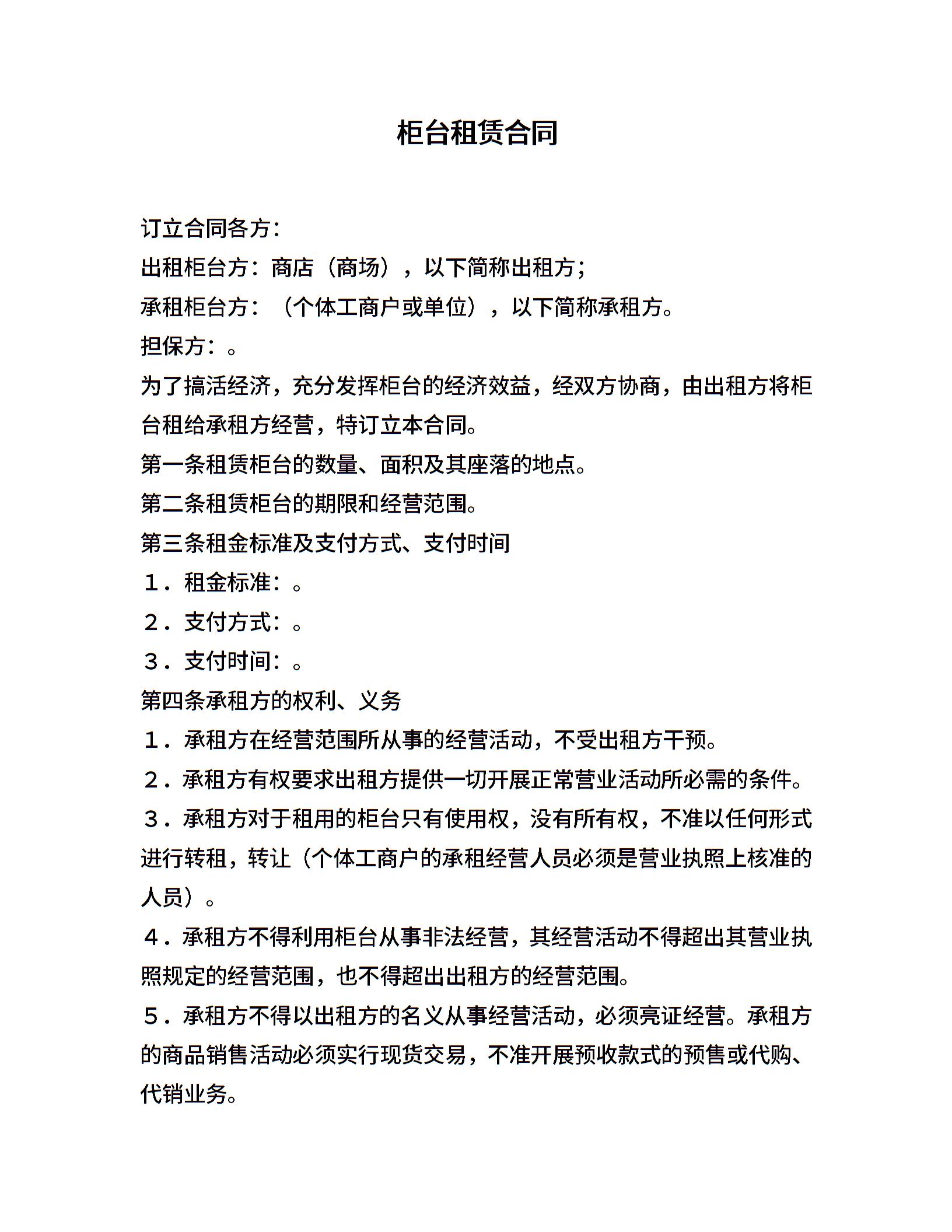 柜台租赁合同