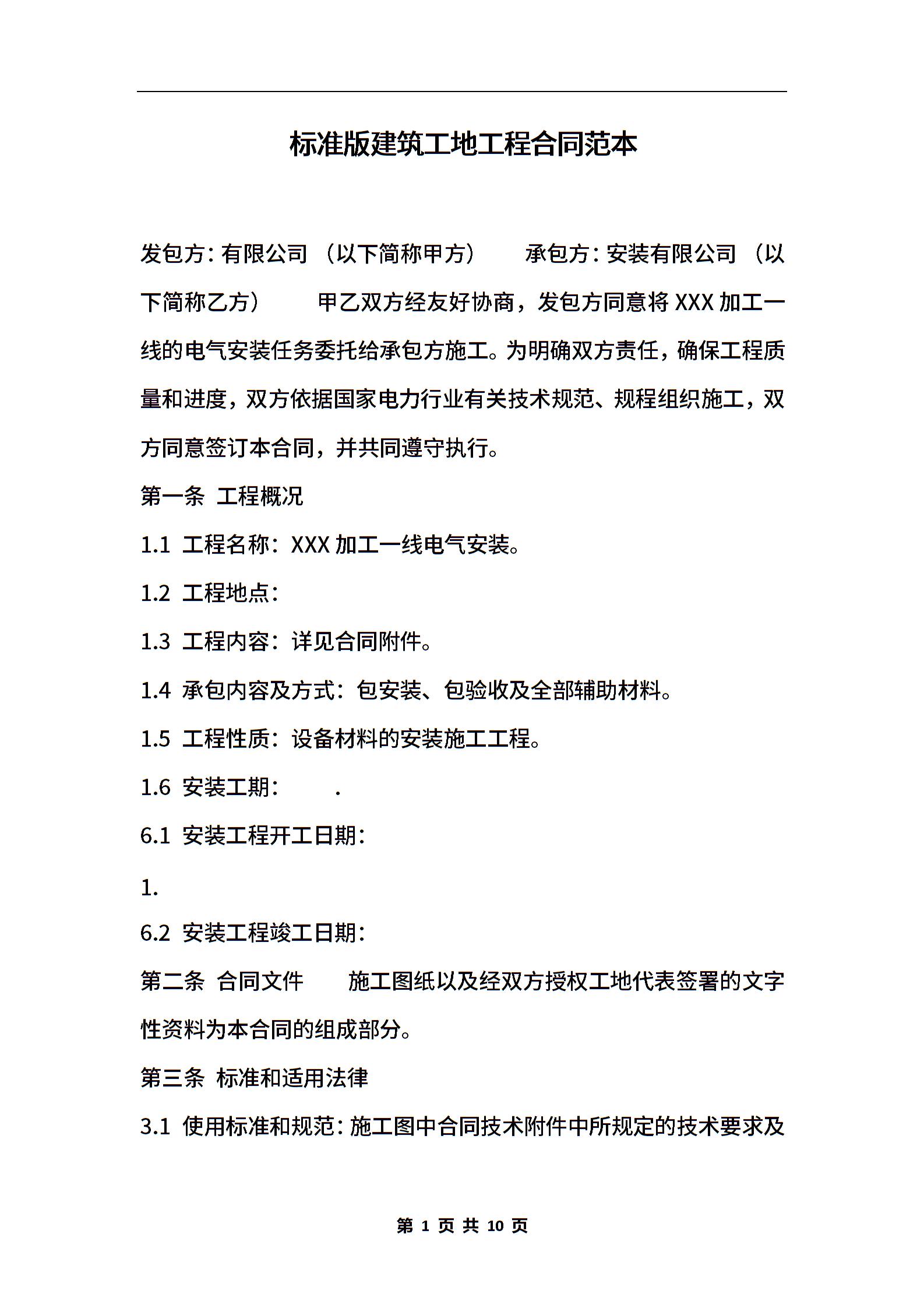 标准版建筑工地工程合同范本
