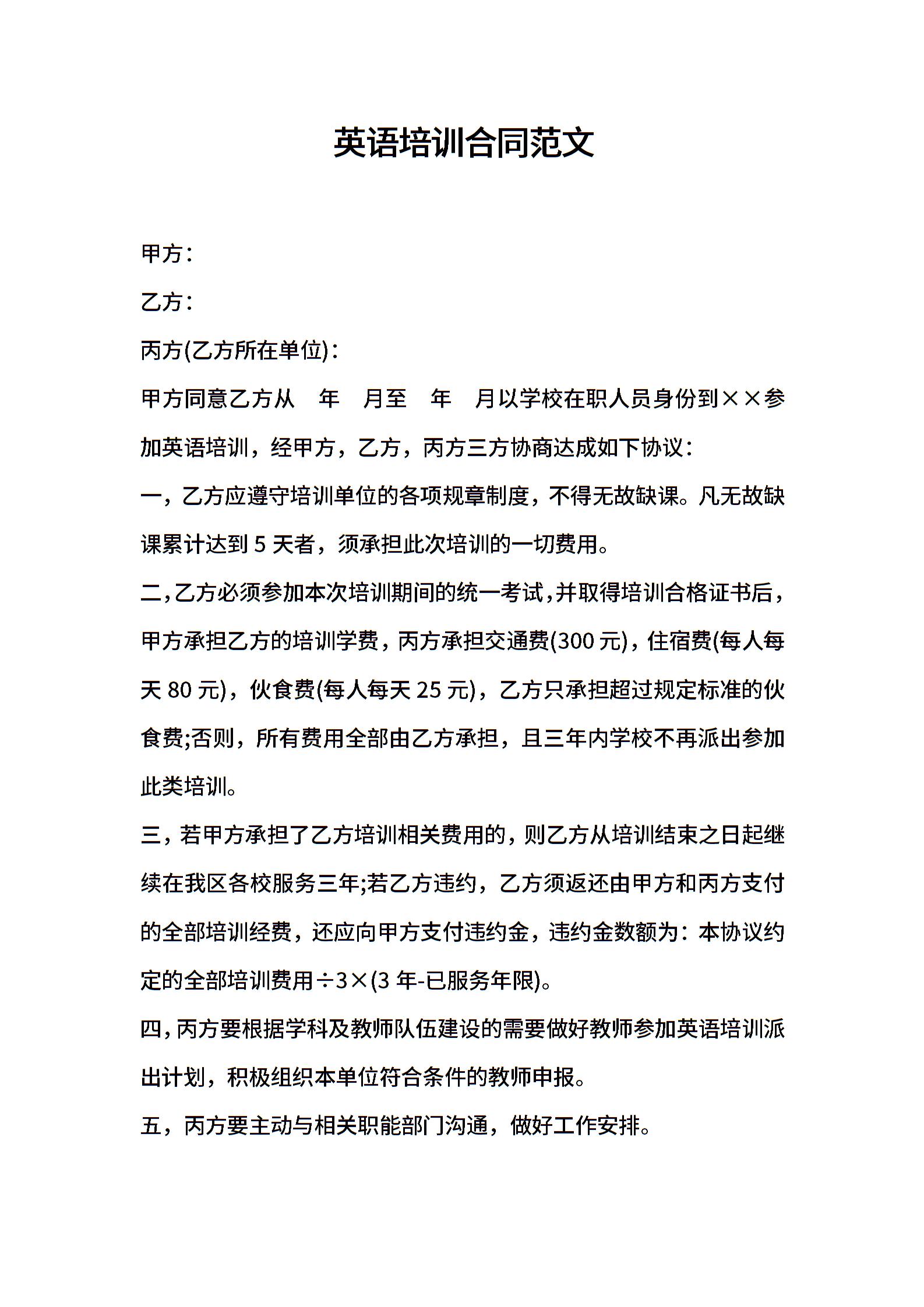 英语培训合同范文