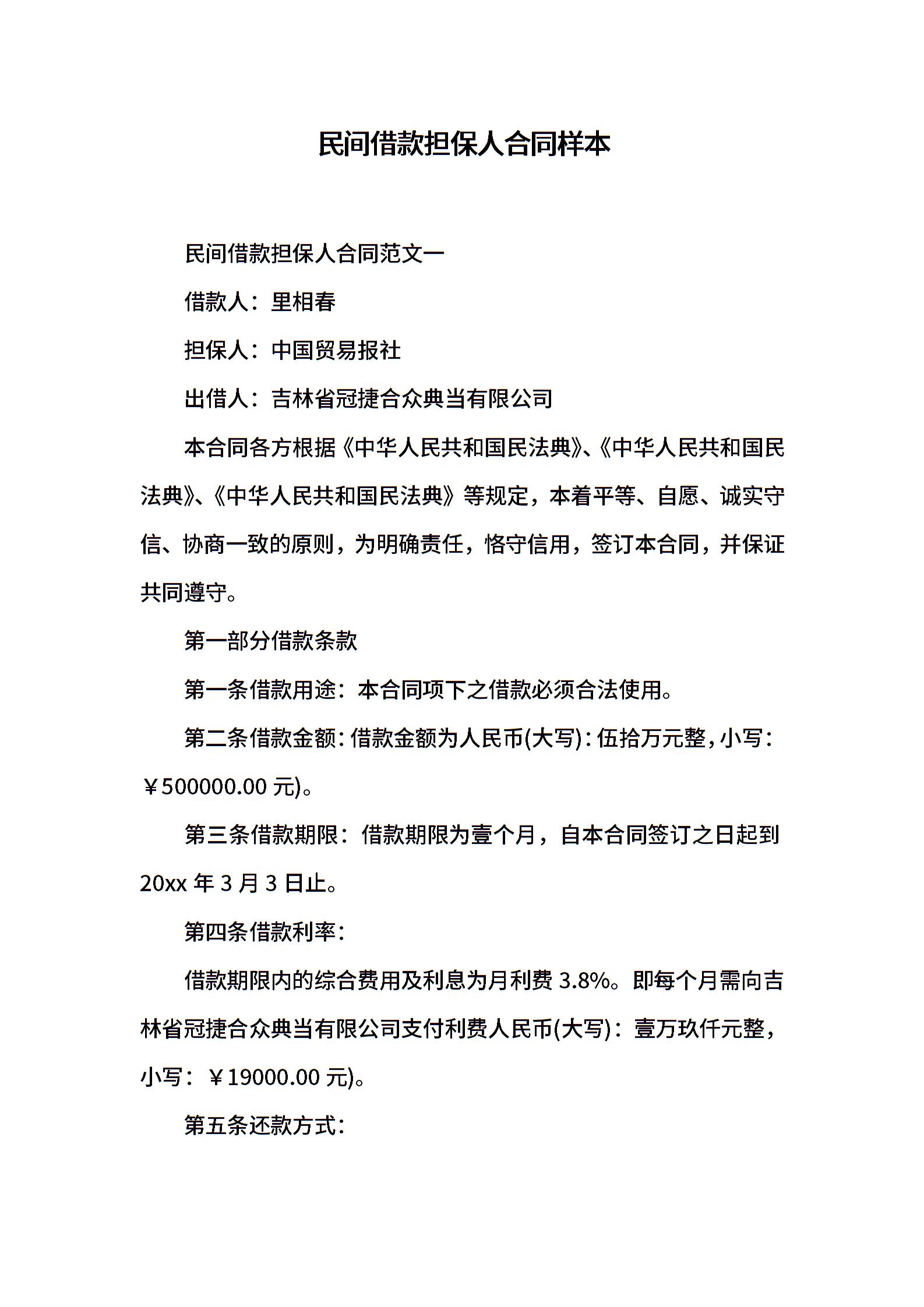 民间借款担保人合同样本