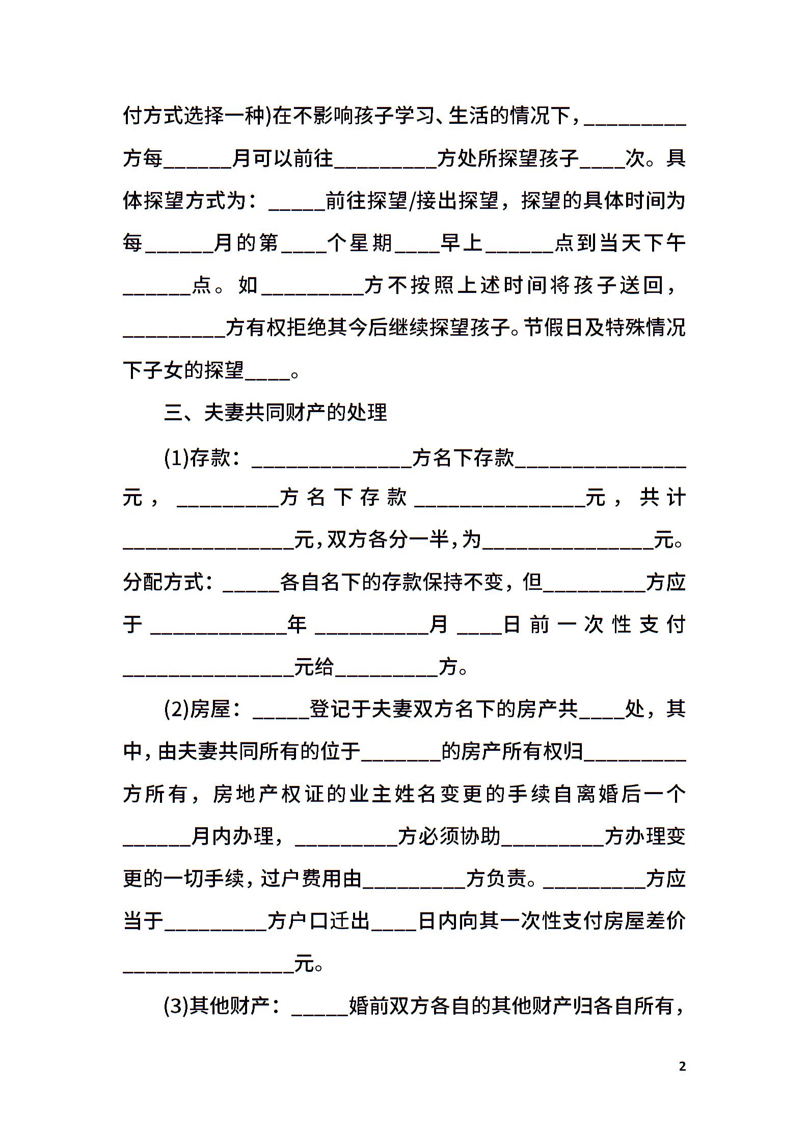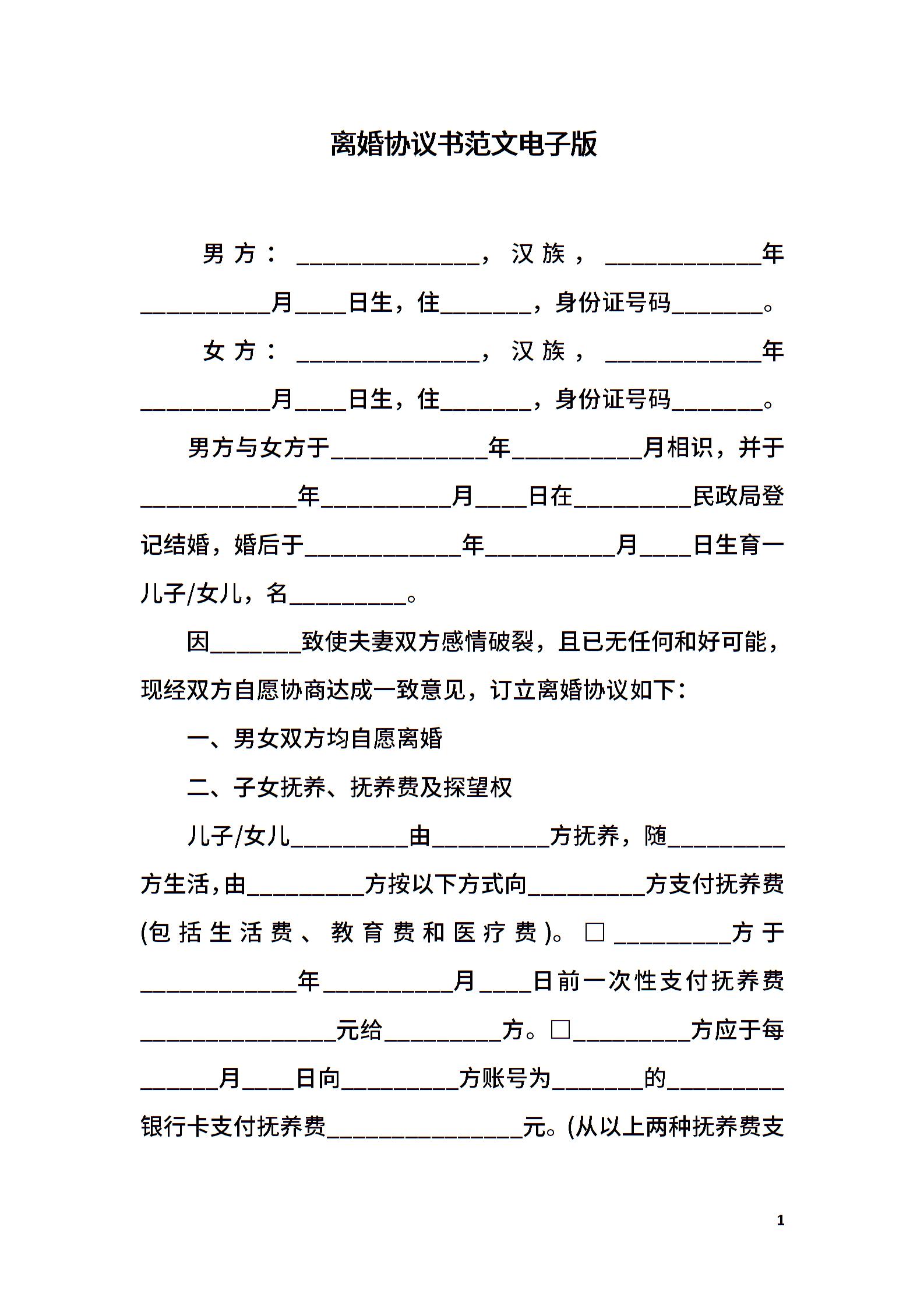 离婚协议书范文电子版