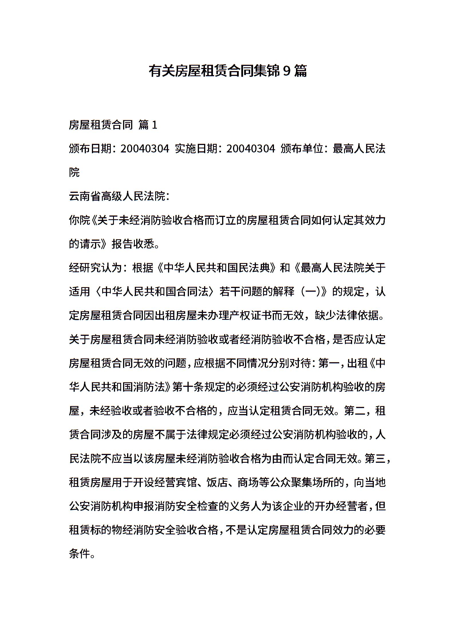 有关房屋租赁合同集锦9篇