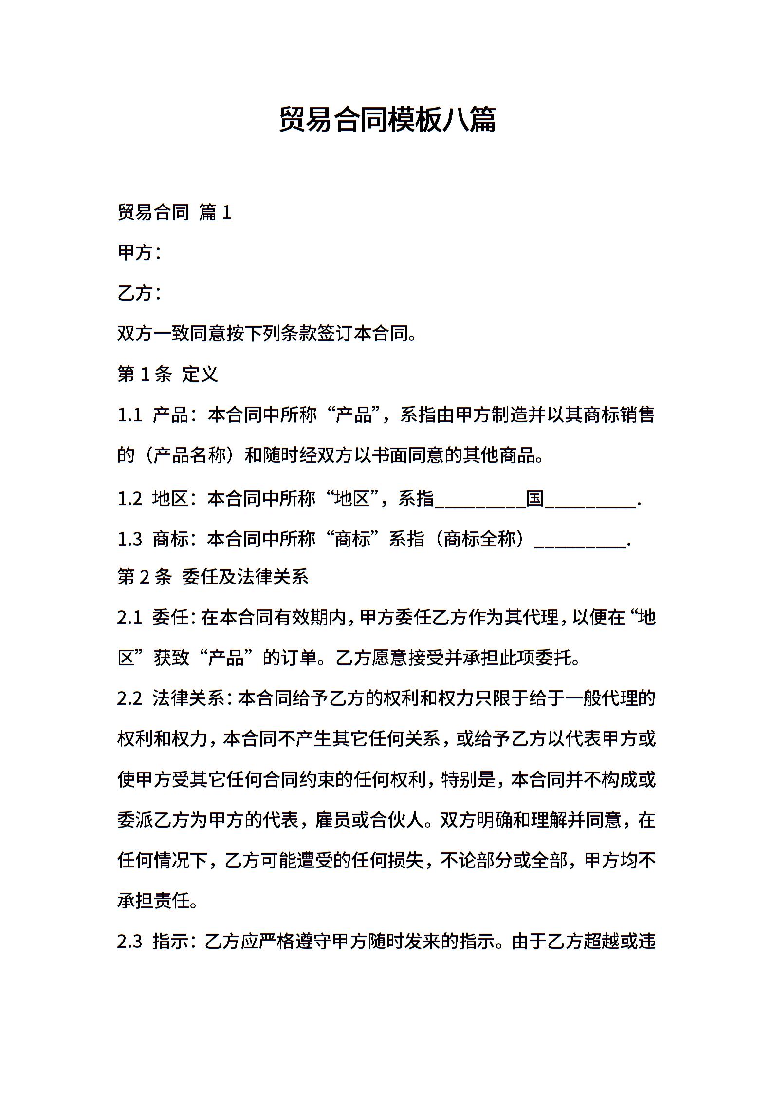 当前位置:量子办公 > 合同模板 > 贸易合同 >