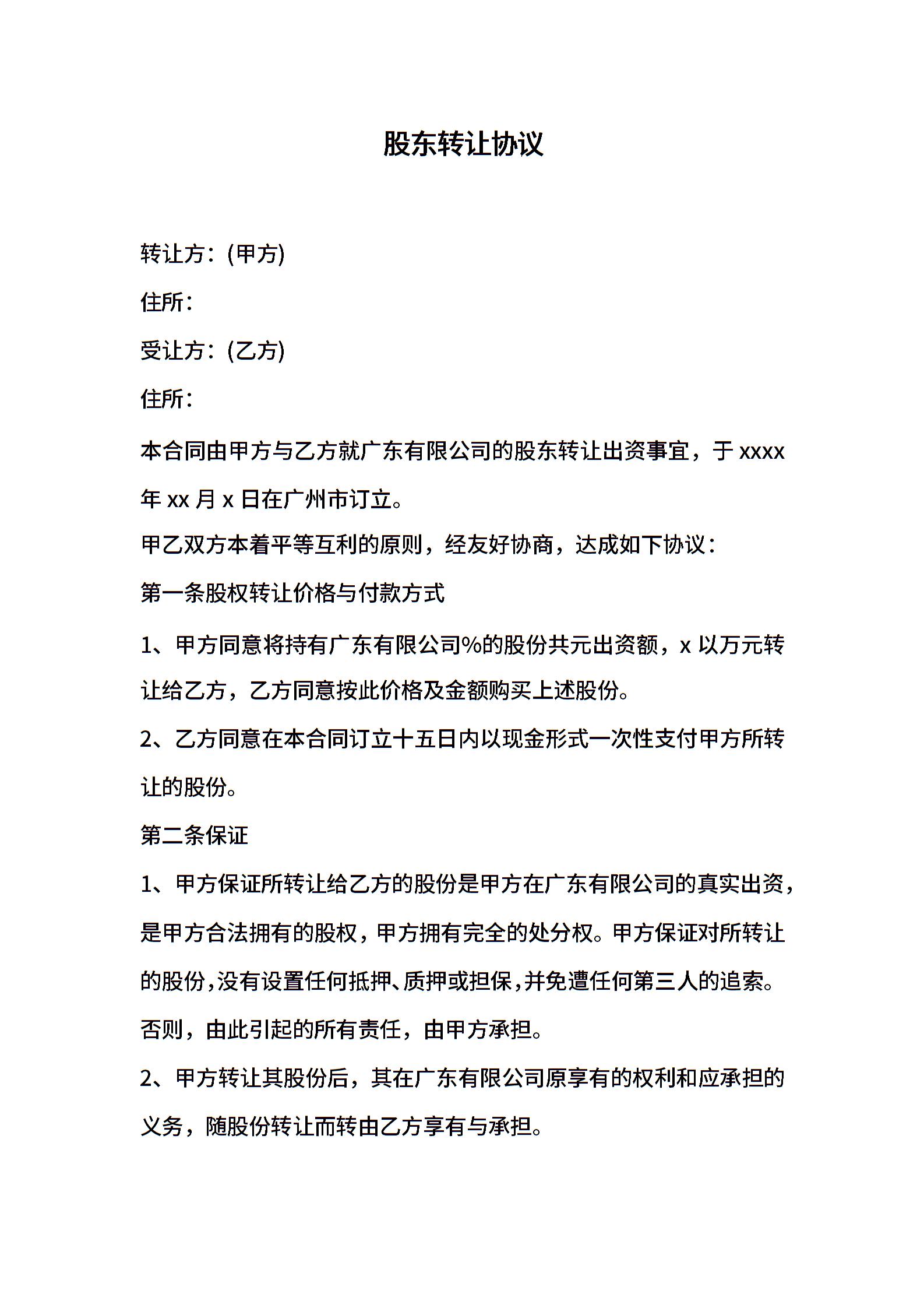 股东转让协议