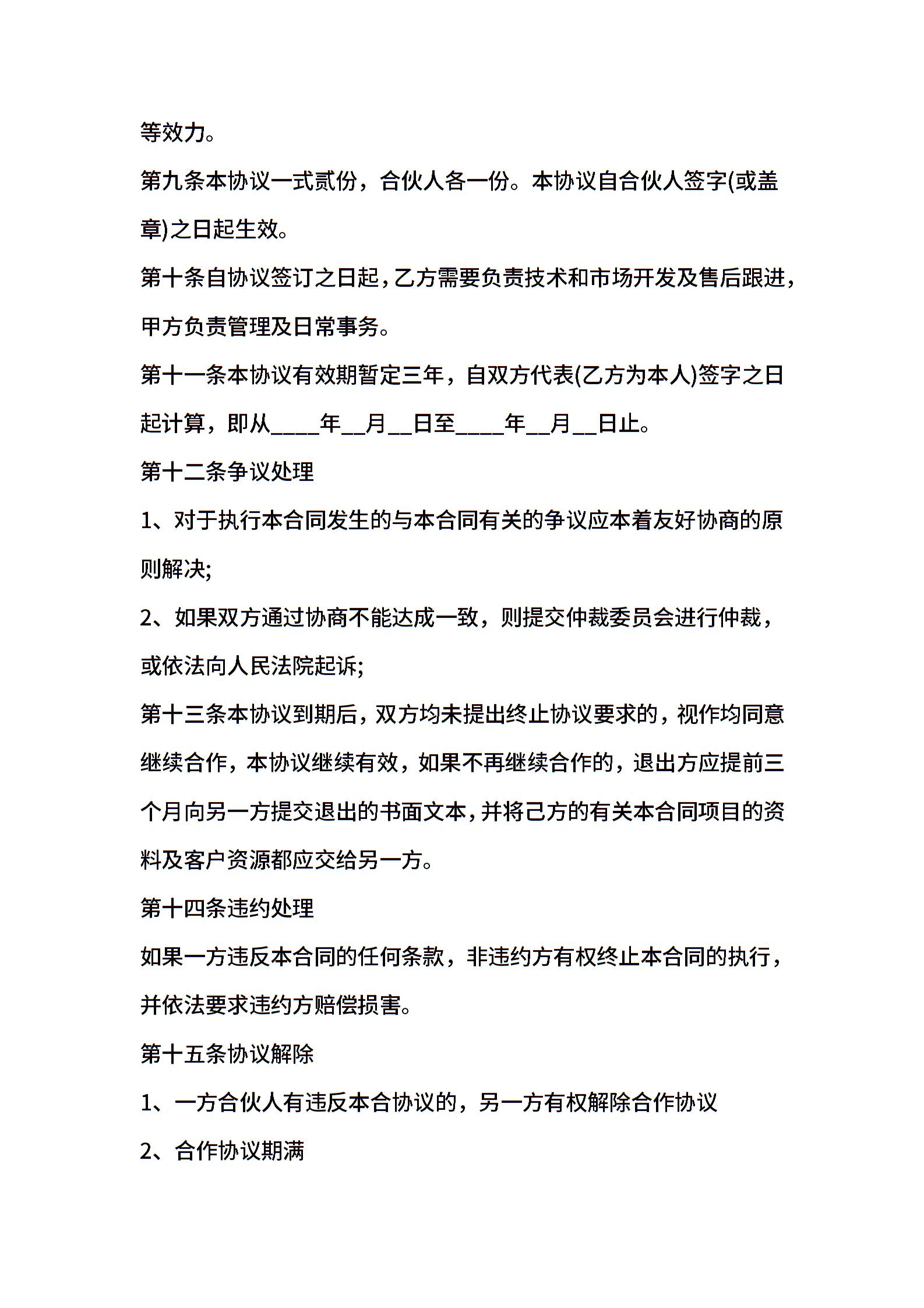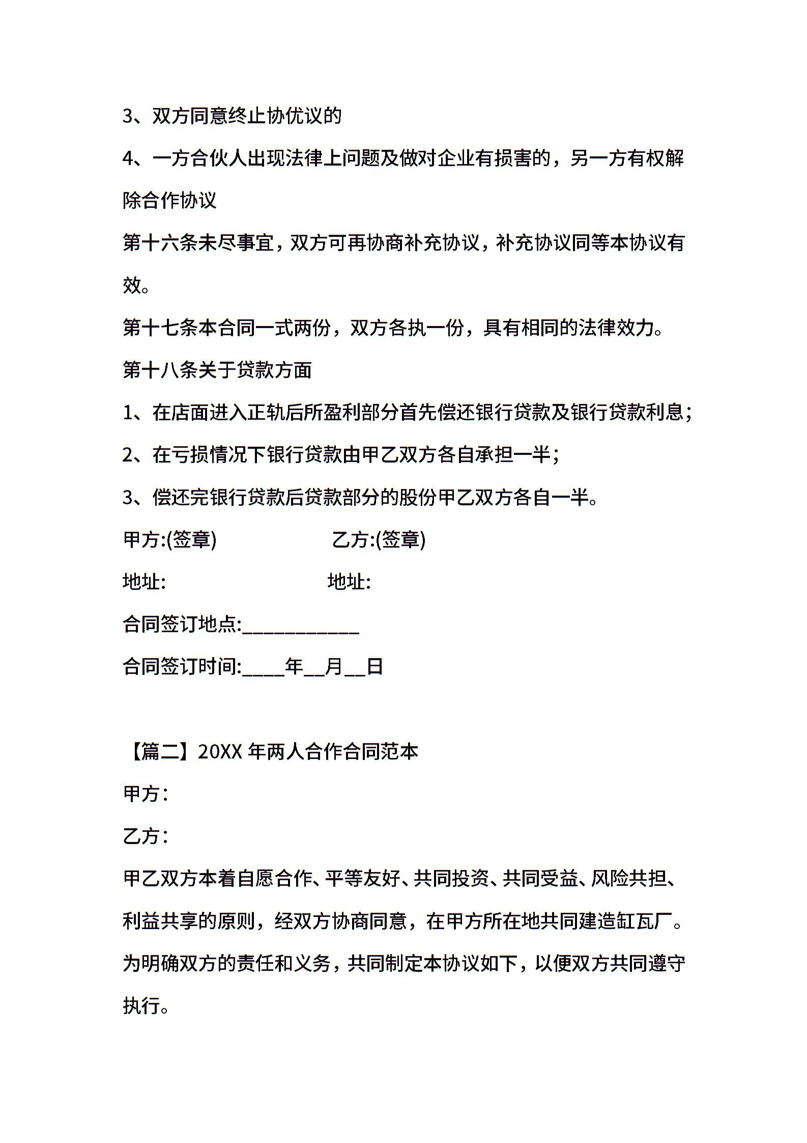2021年两人合作合同范本五篇