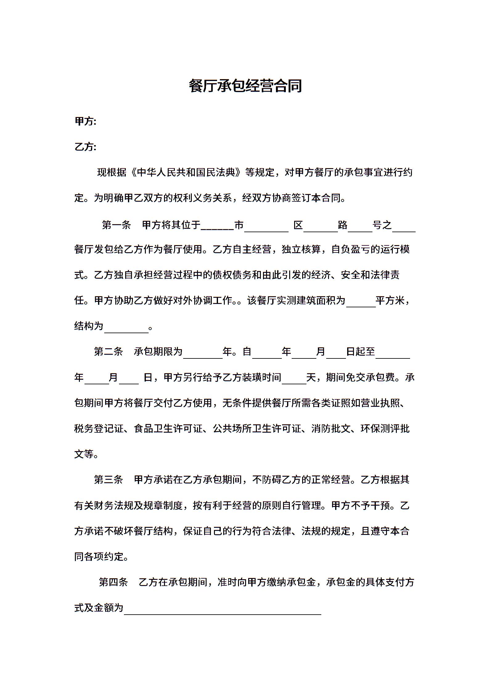 餐厅承包经营合同1.docx