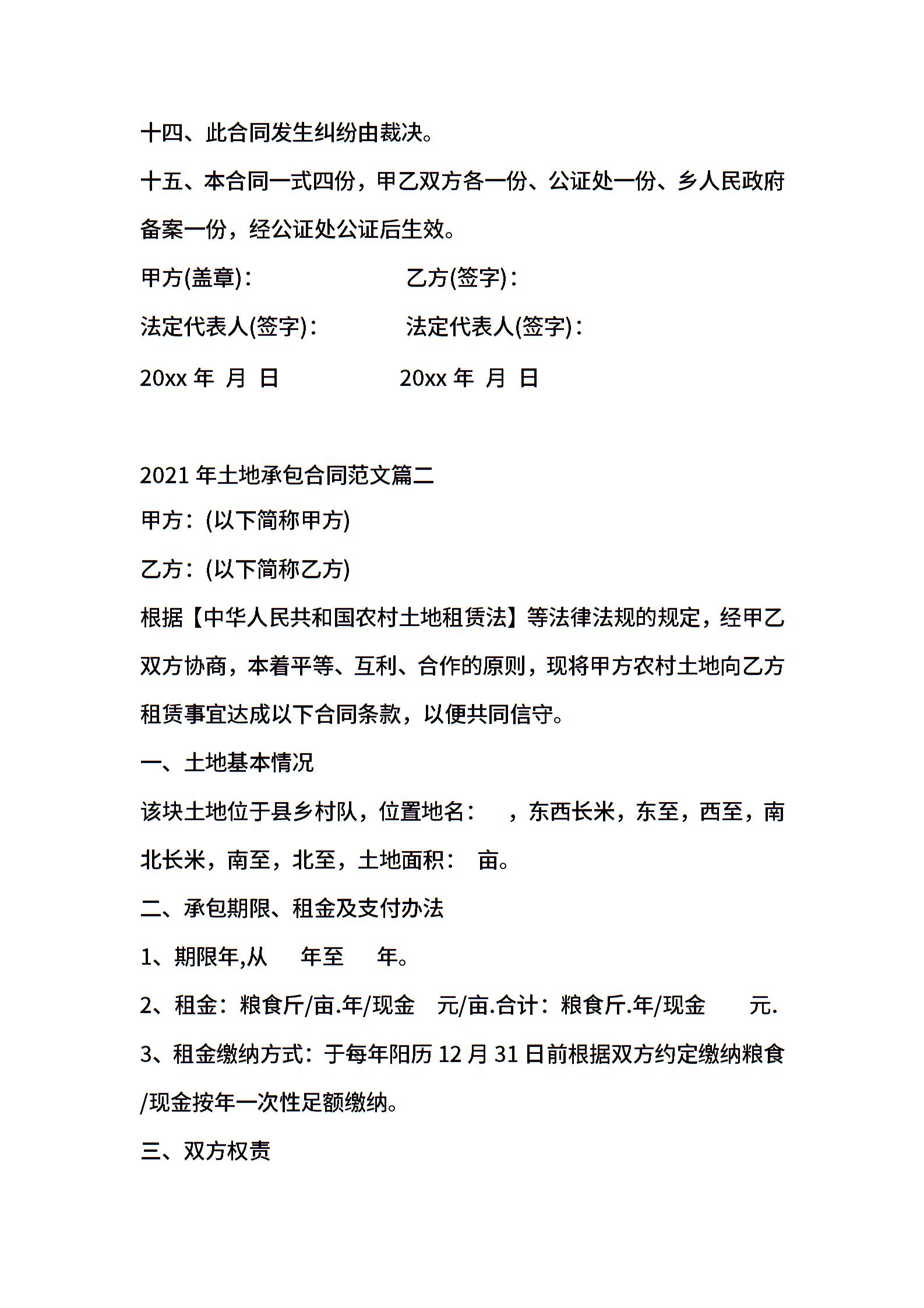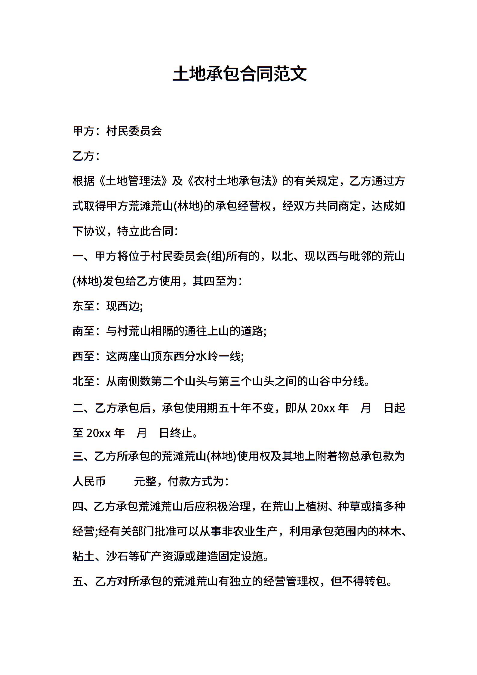 土地承包合同范文