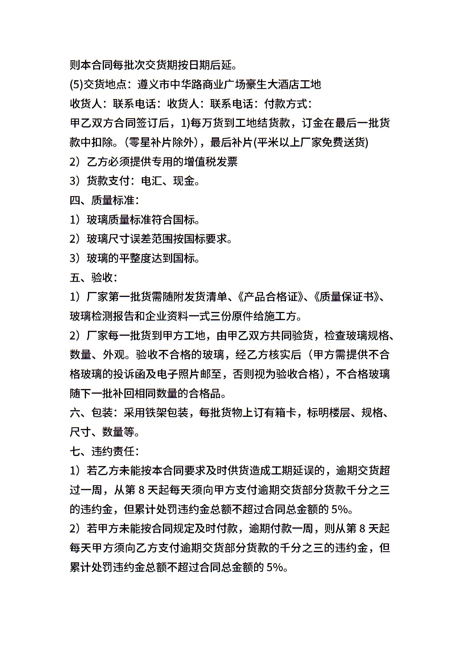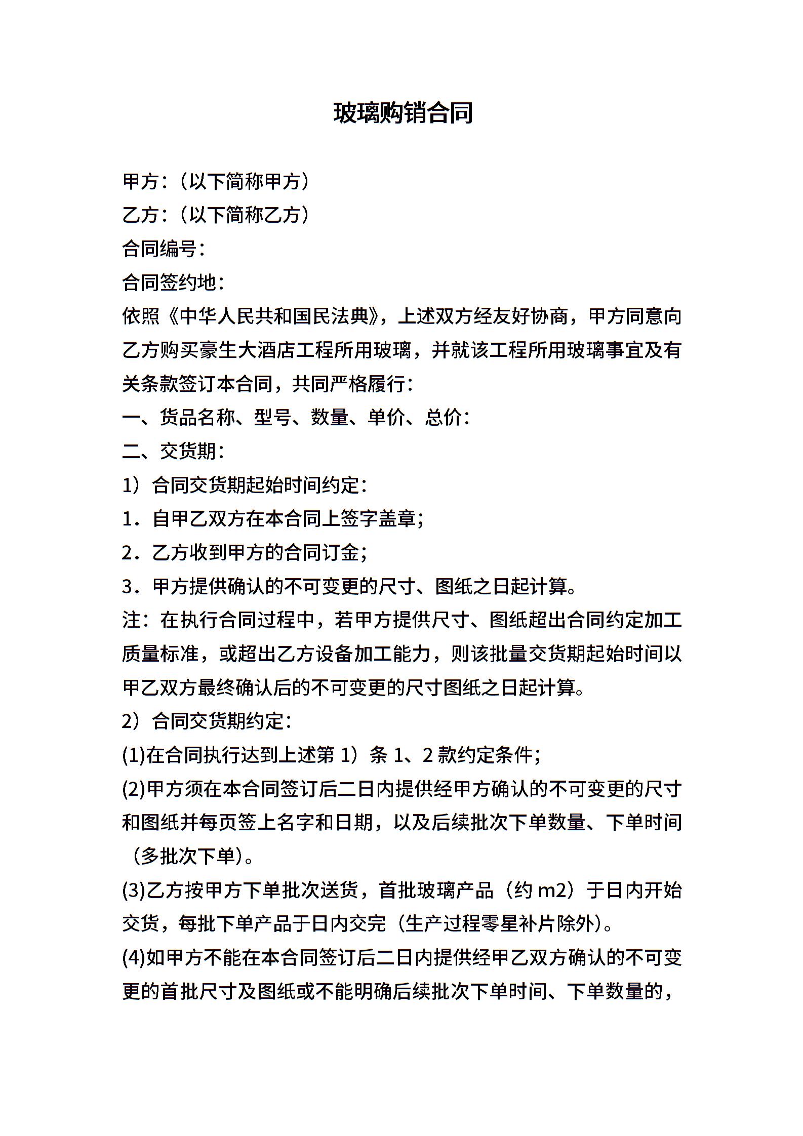 玻璃购销合同范本
