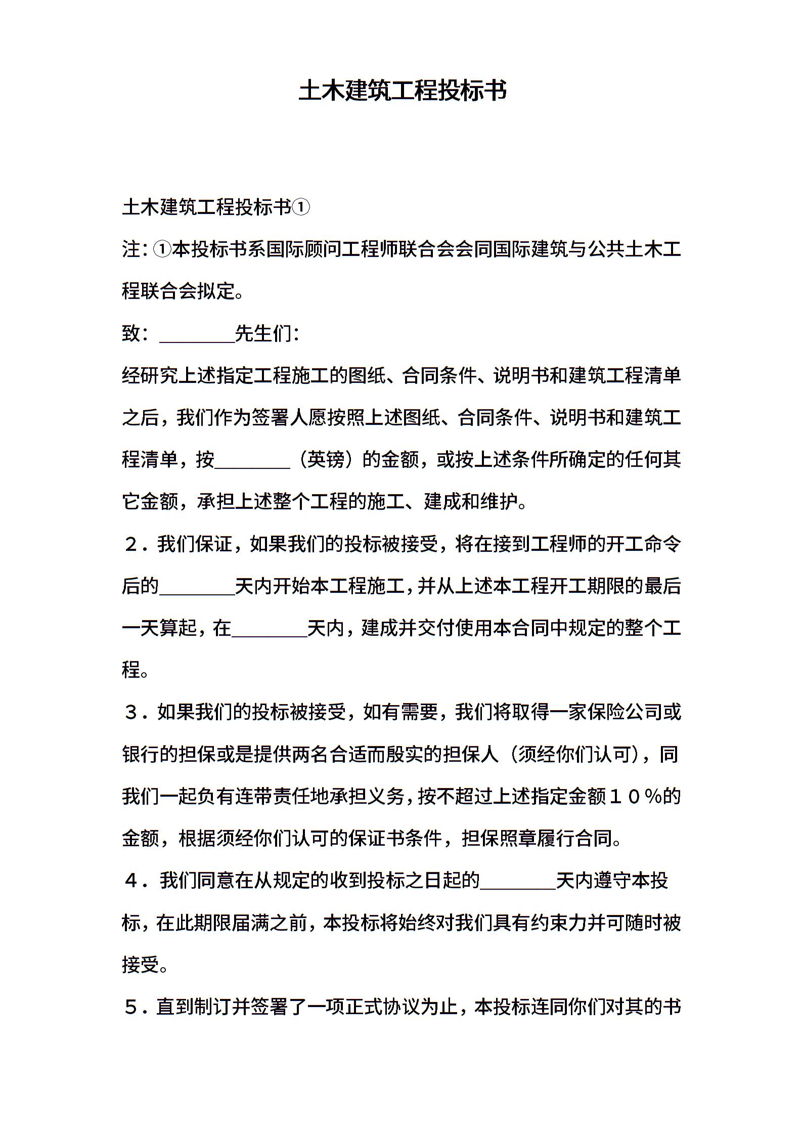 土木建筑工程投标书