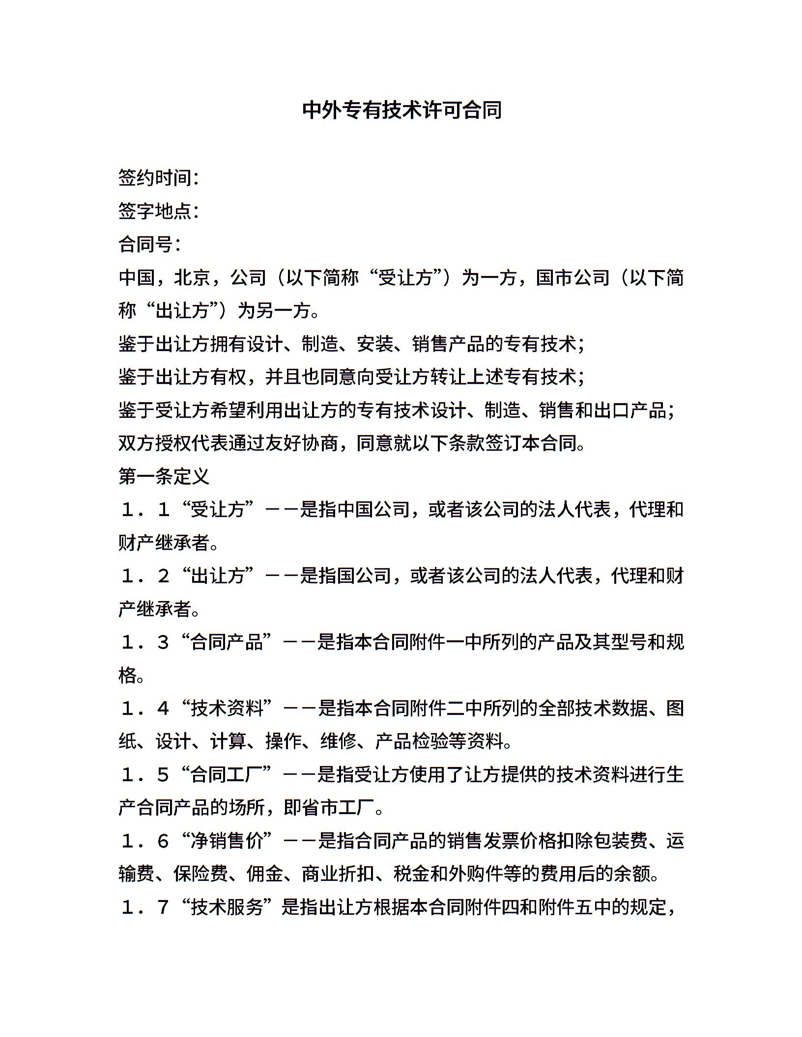 中外专有技术许可合同(2)