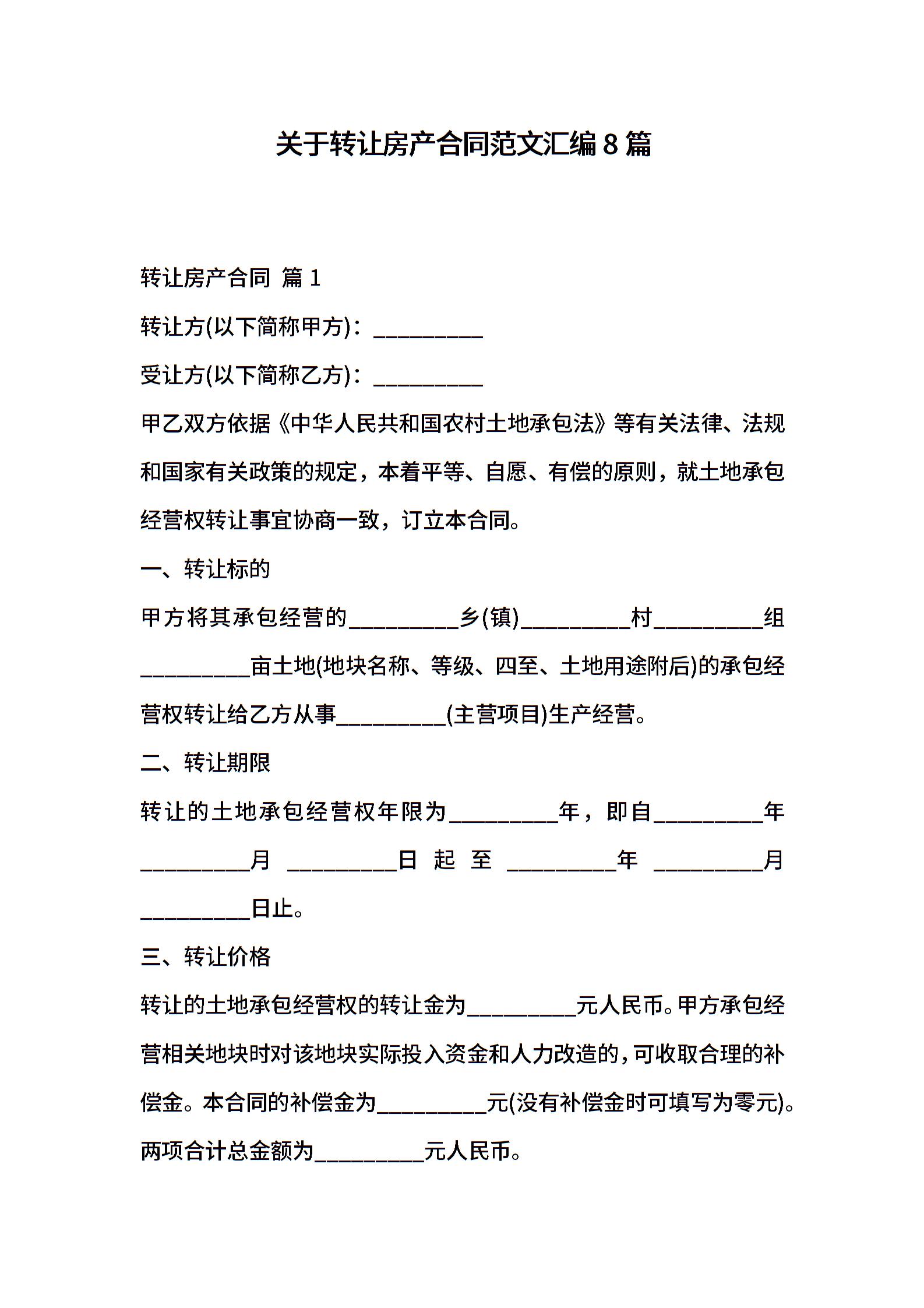 关于转让房产合同范文汇编8篇