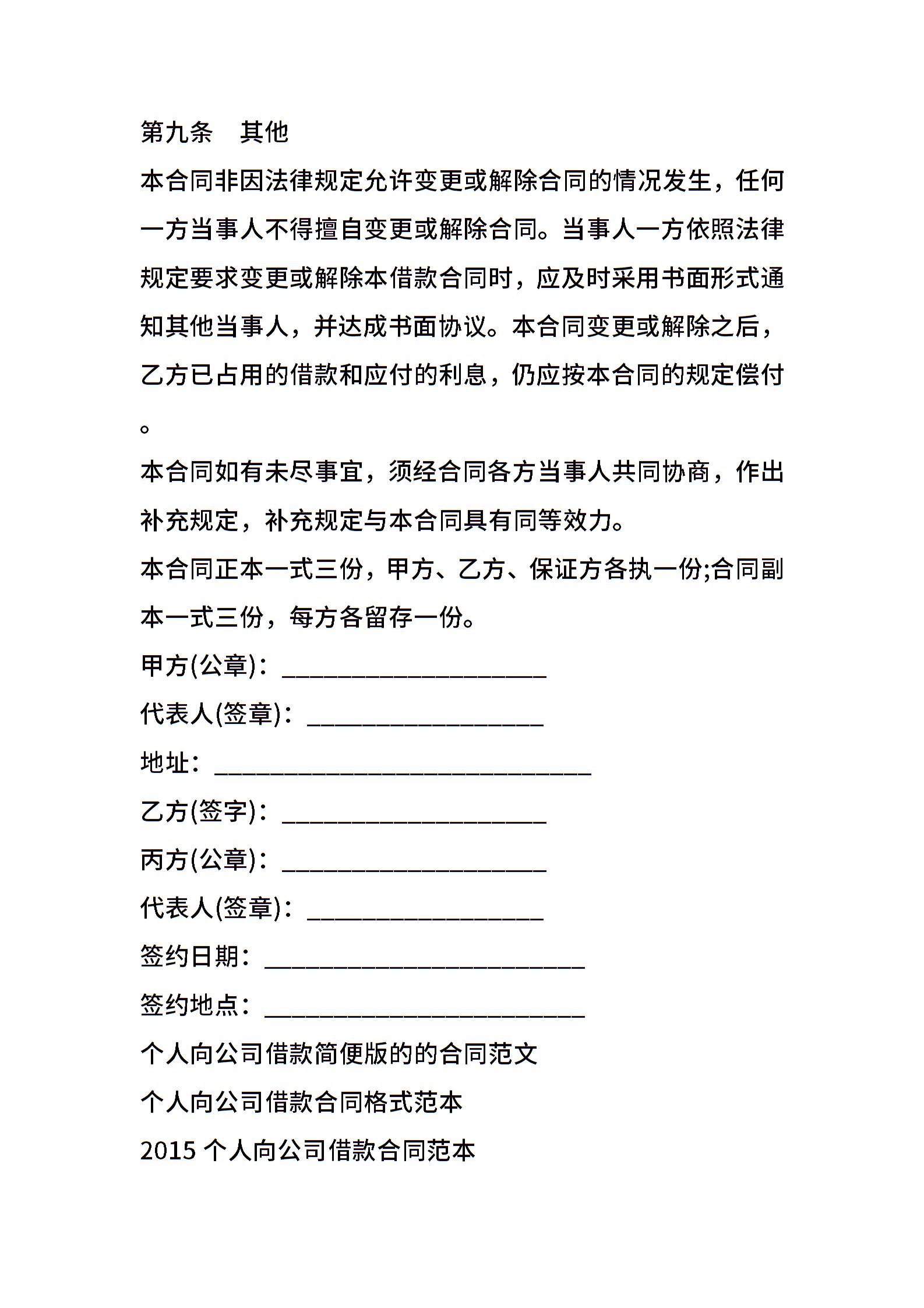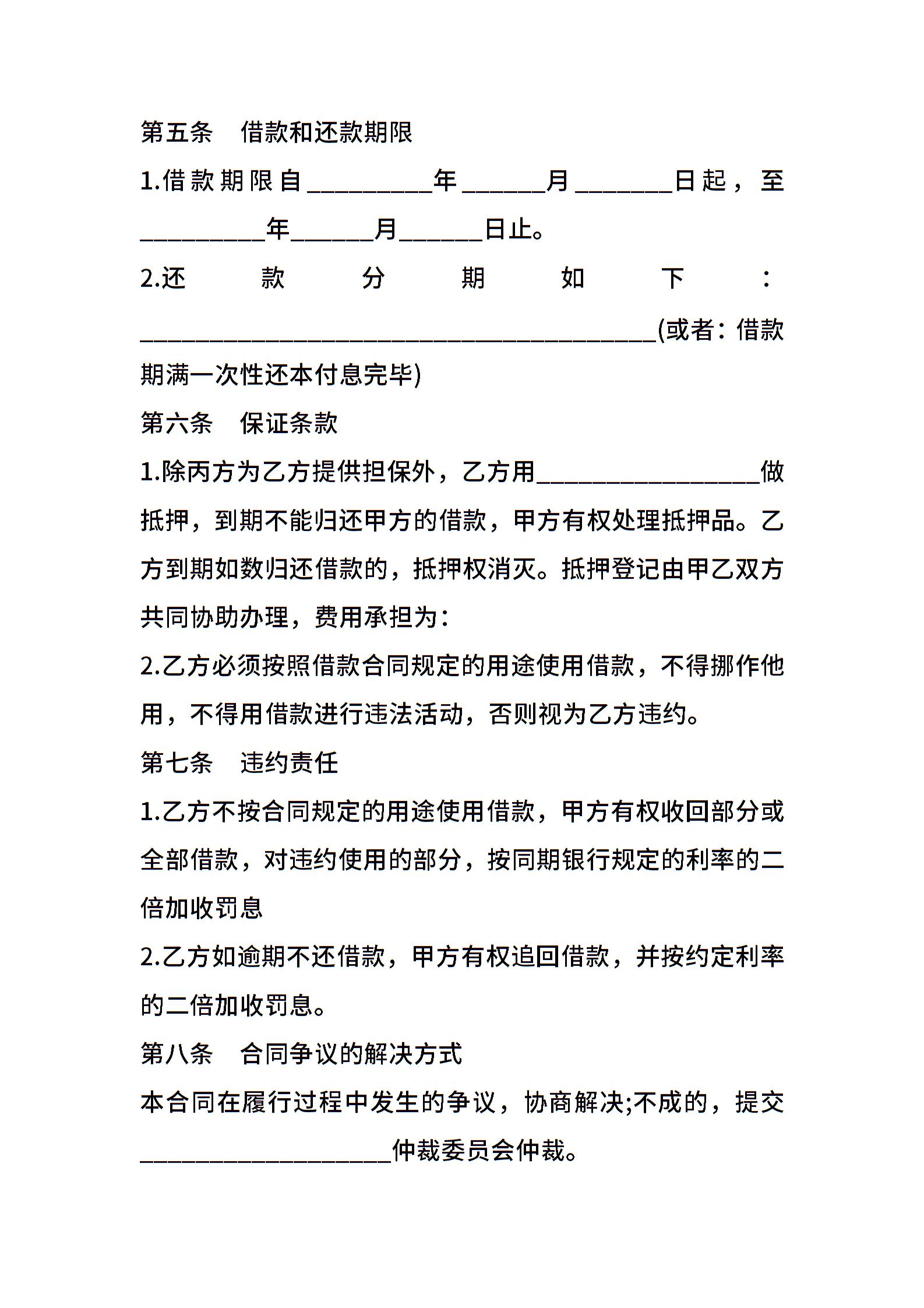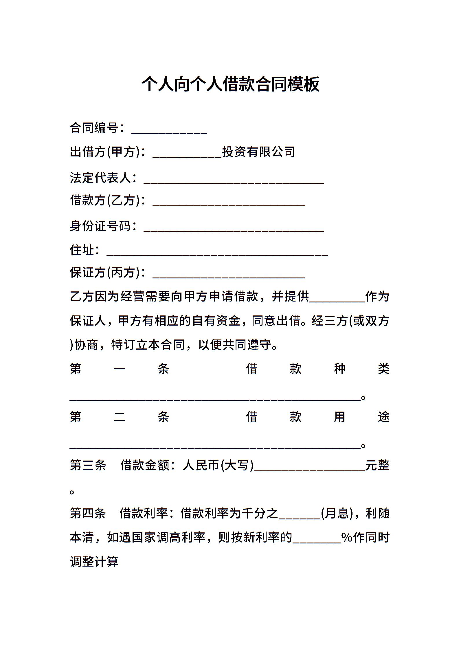 个人向个人借款合同模板