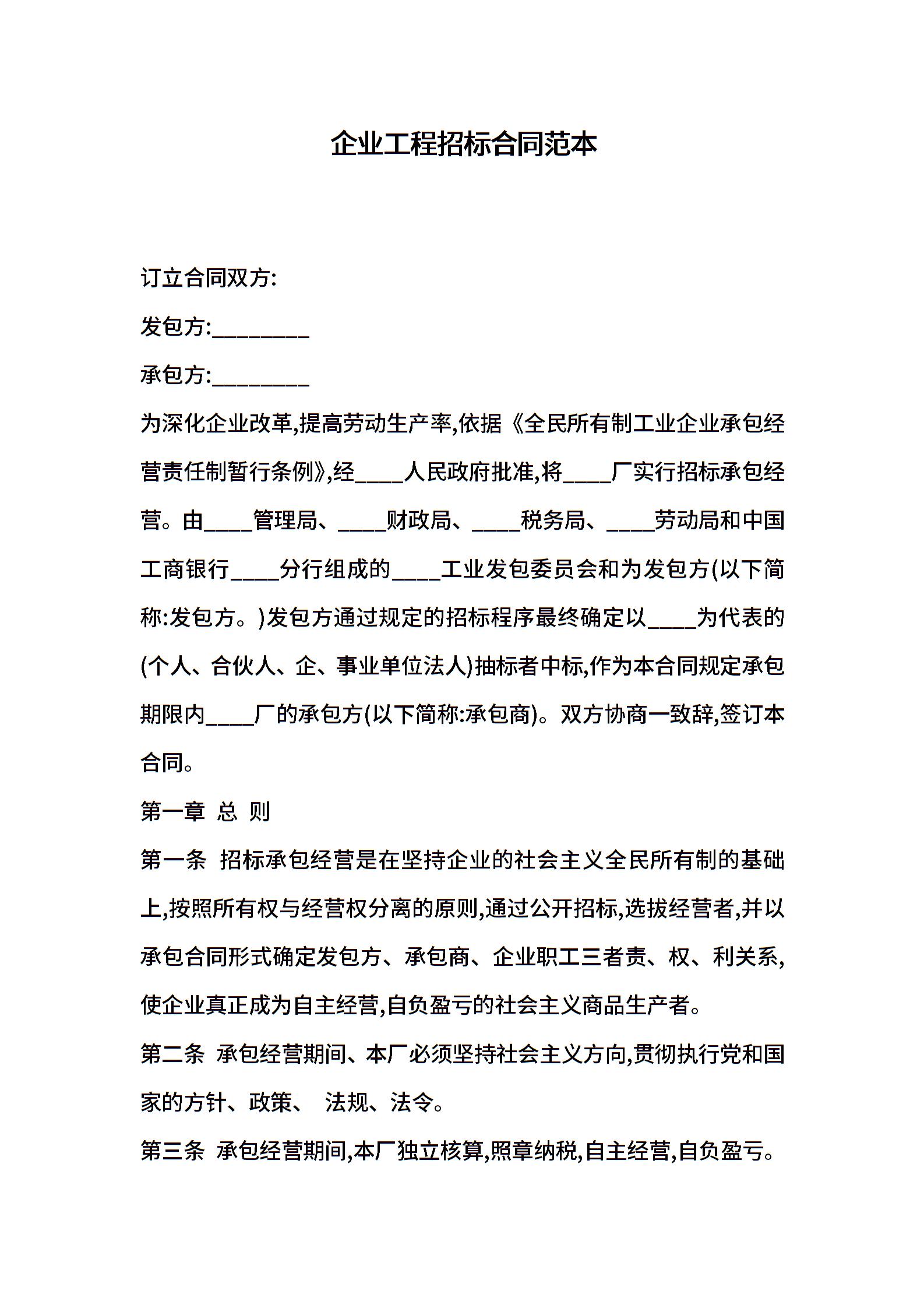企业工程招标合同范本