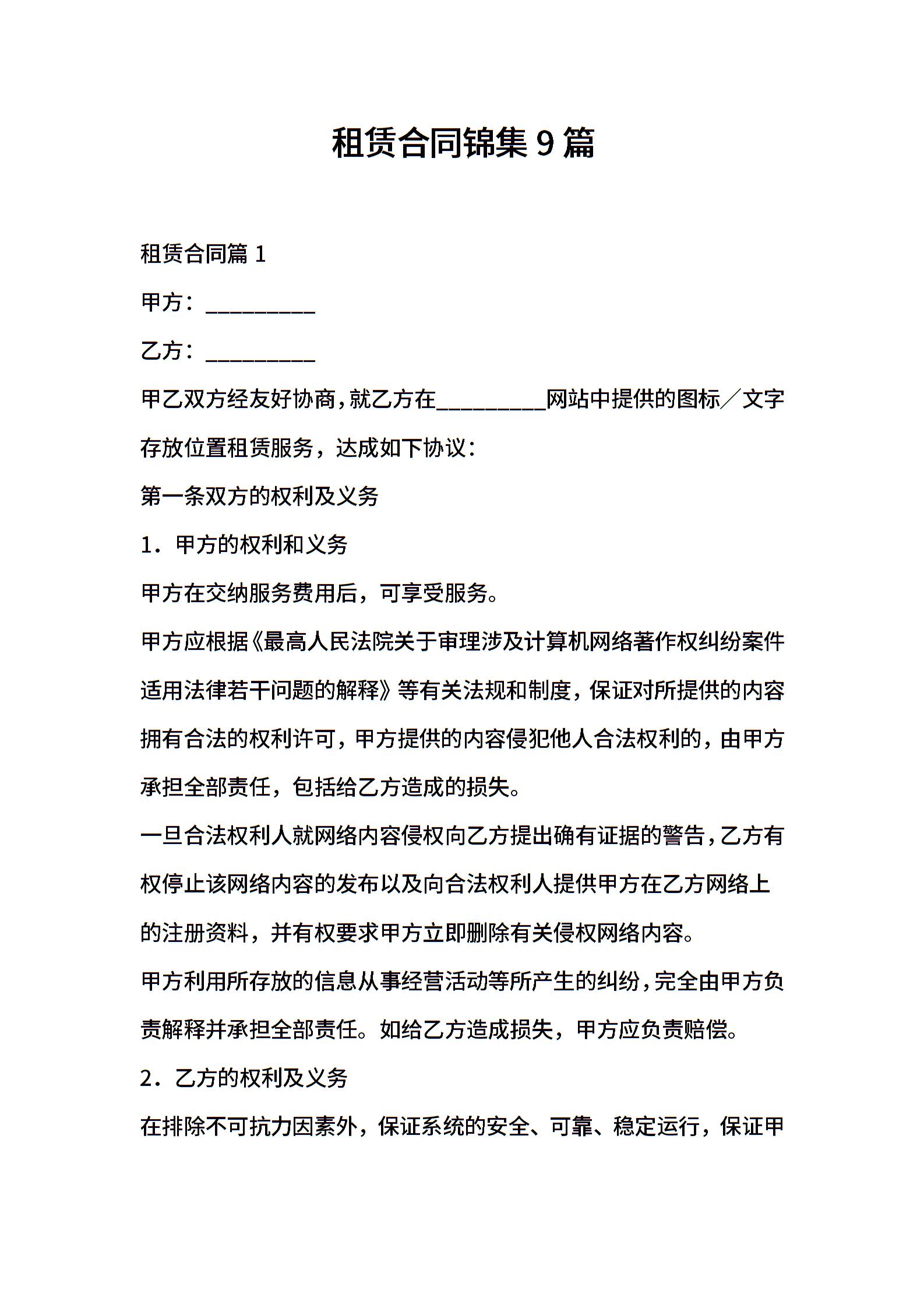 租赁合同锦集9篇