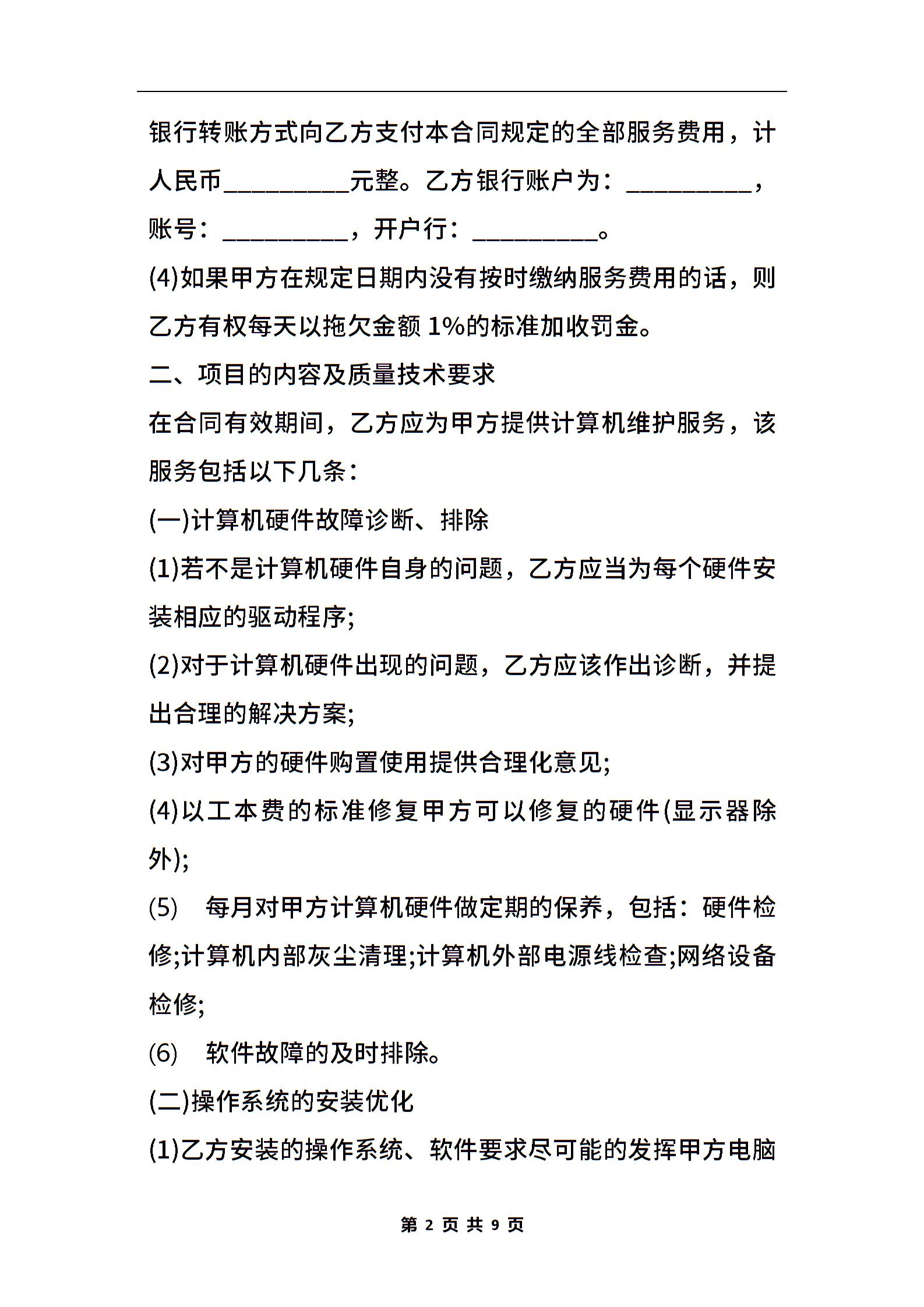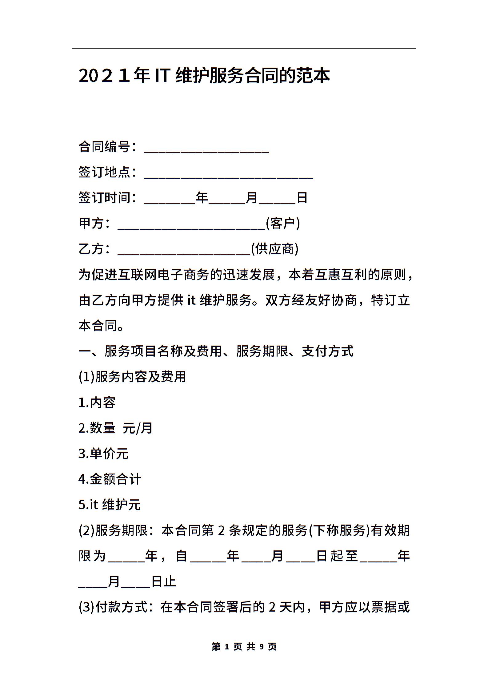 2021年IT维护服务合同的范本