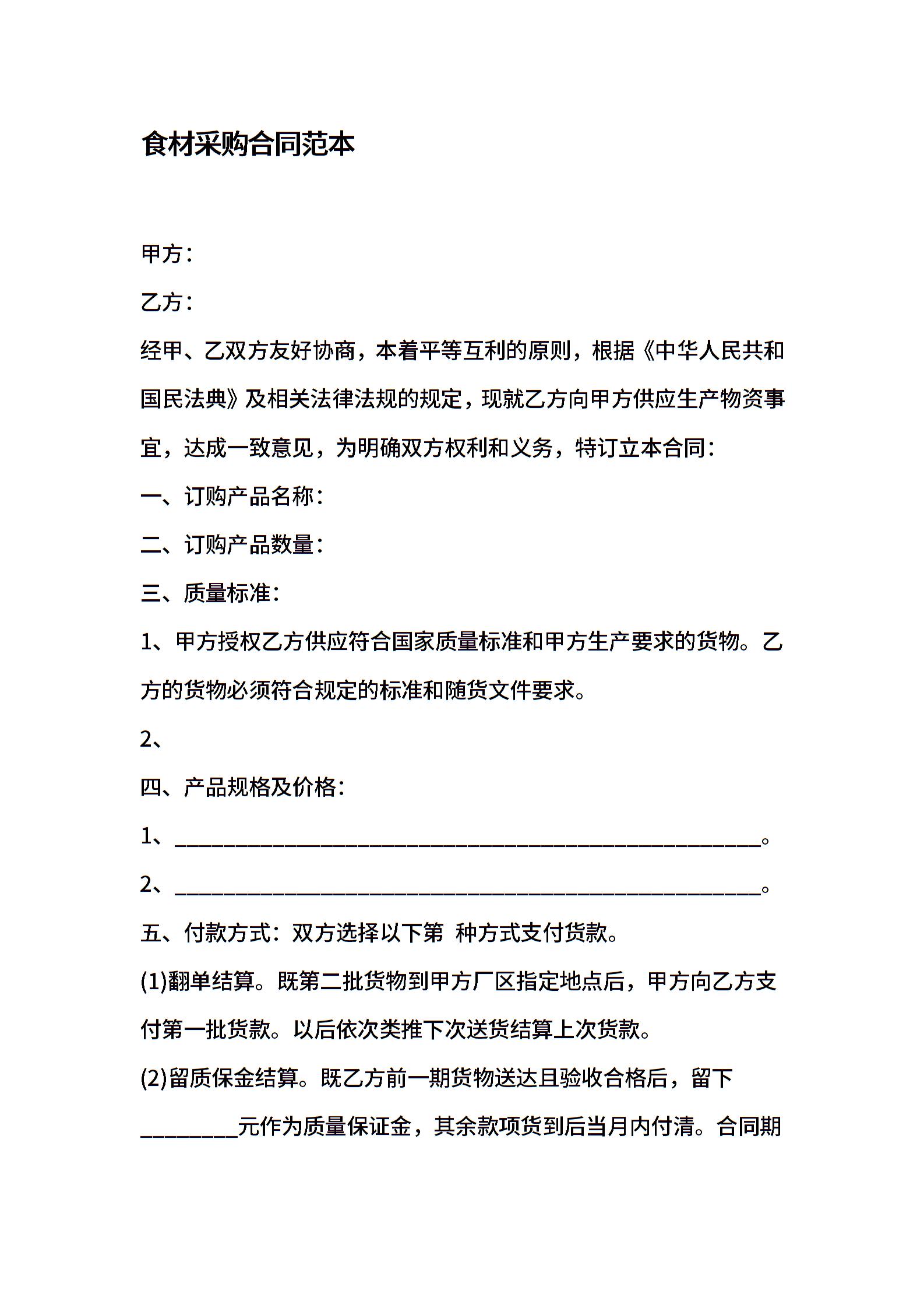 食材采购合同范本