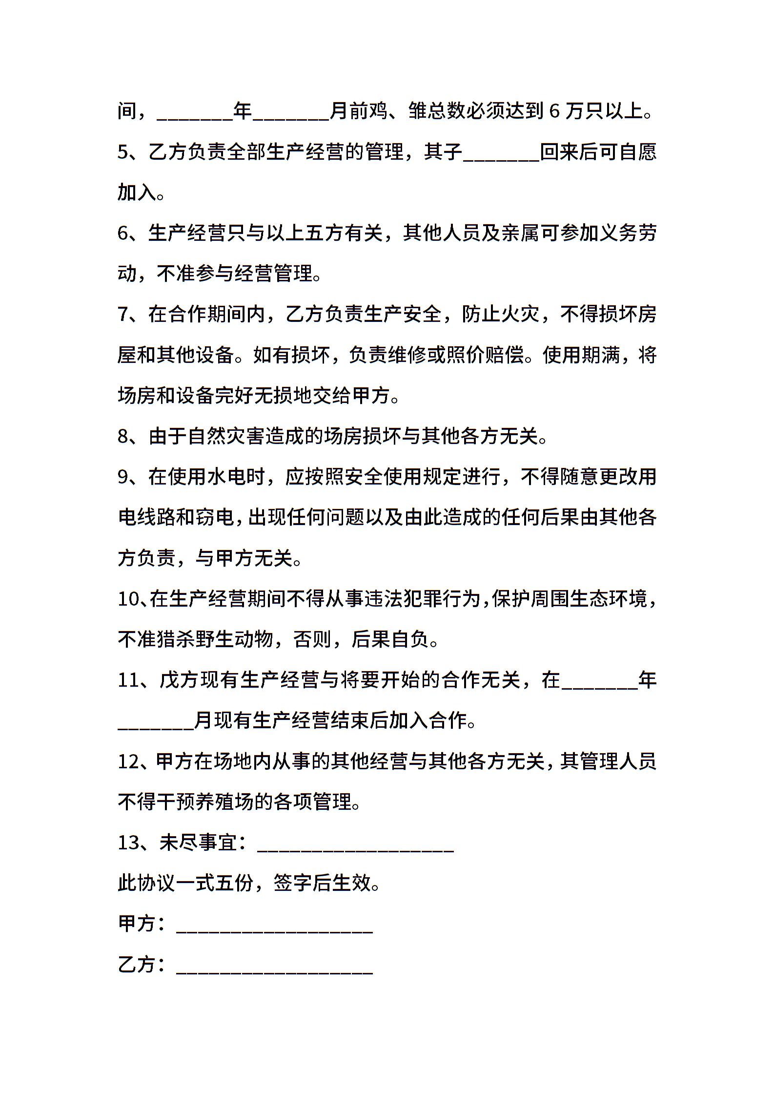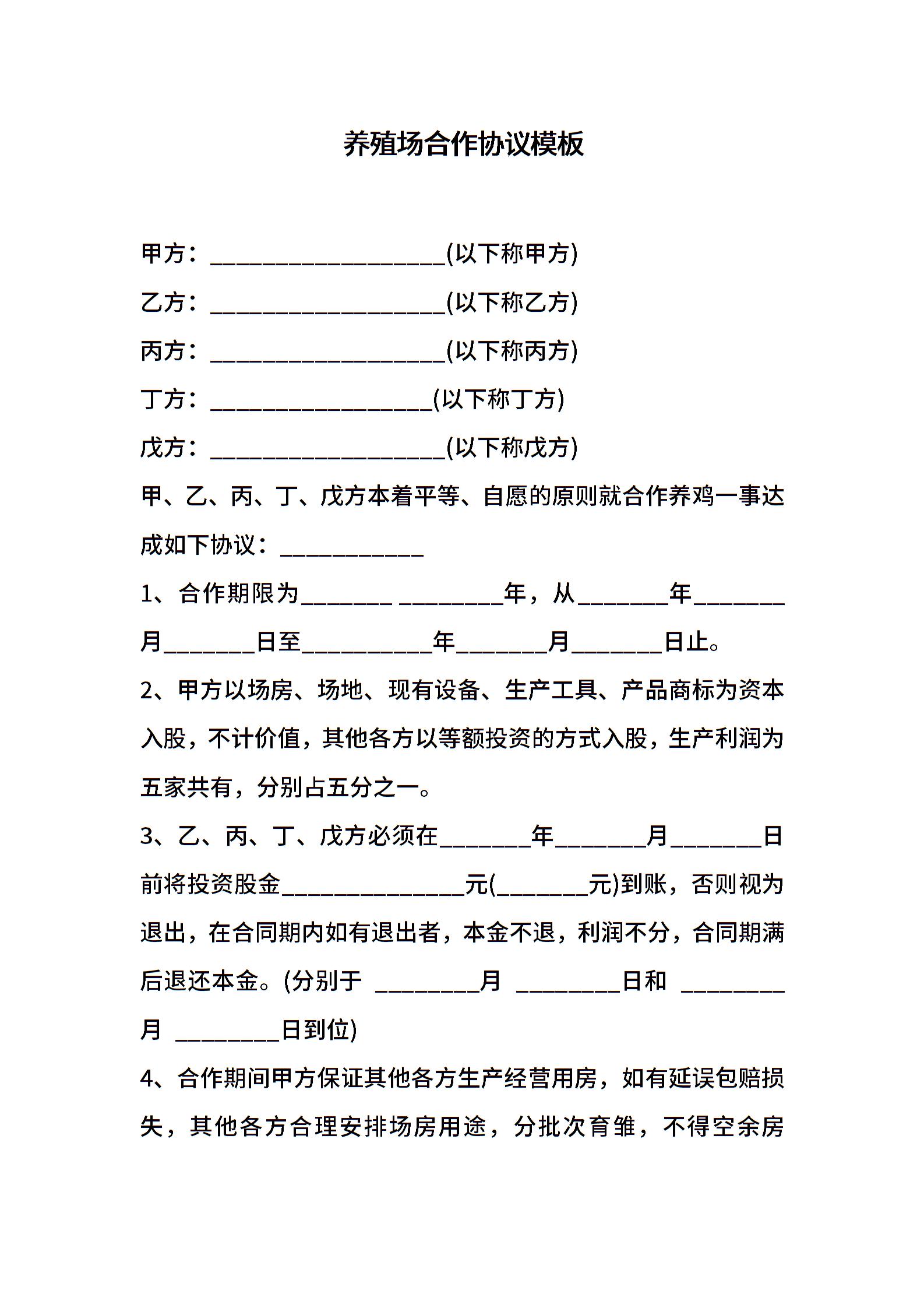 养殖场合作协议模板