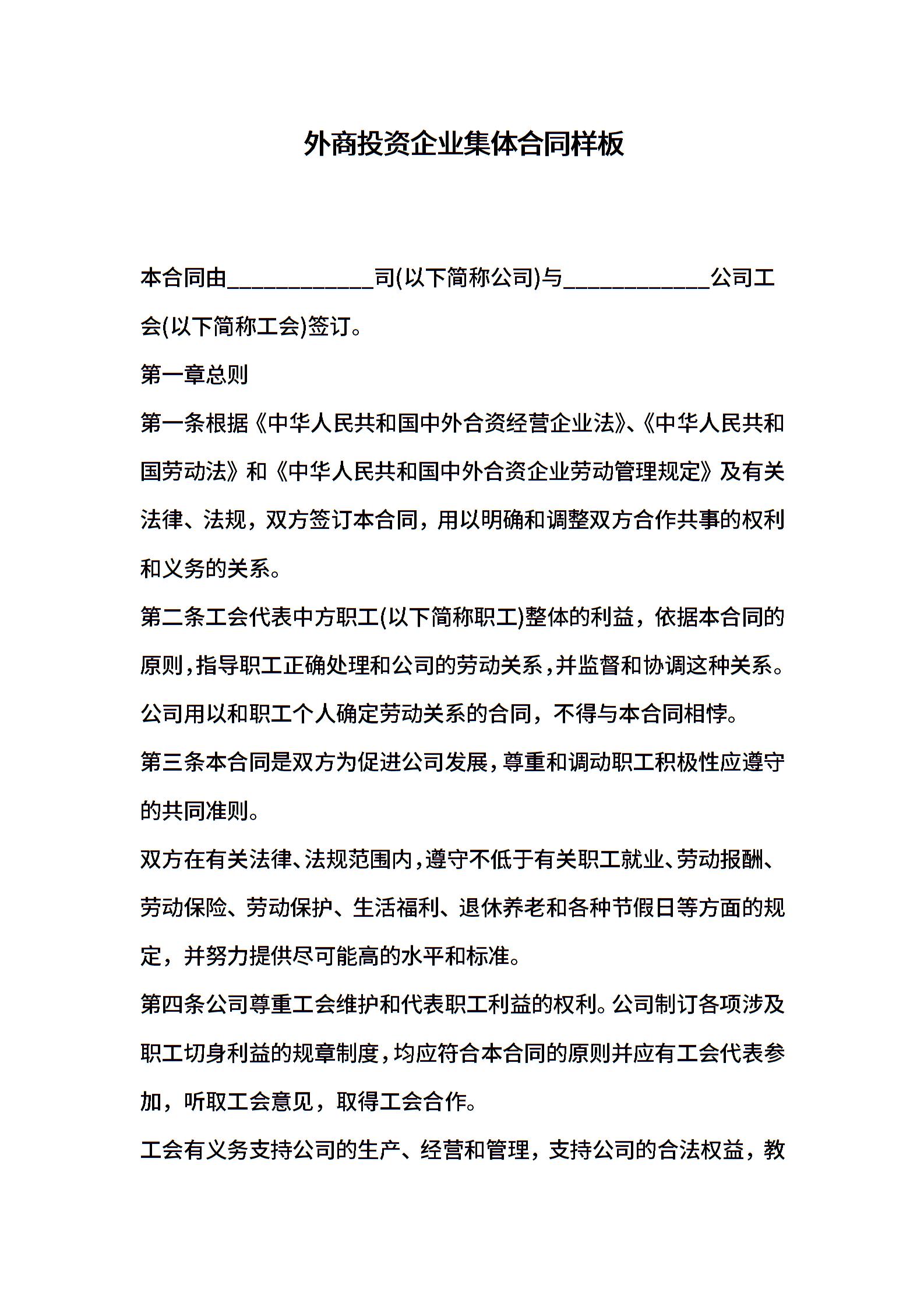 外商投资企业集体合同样板