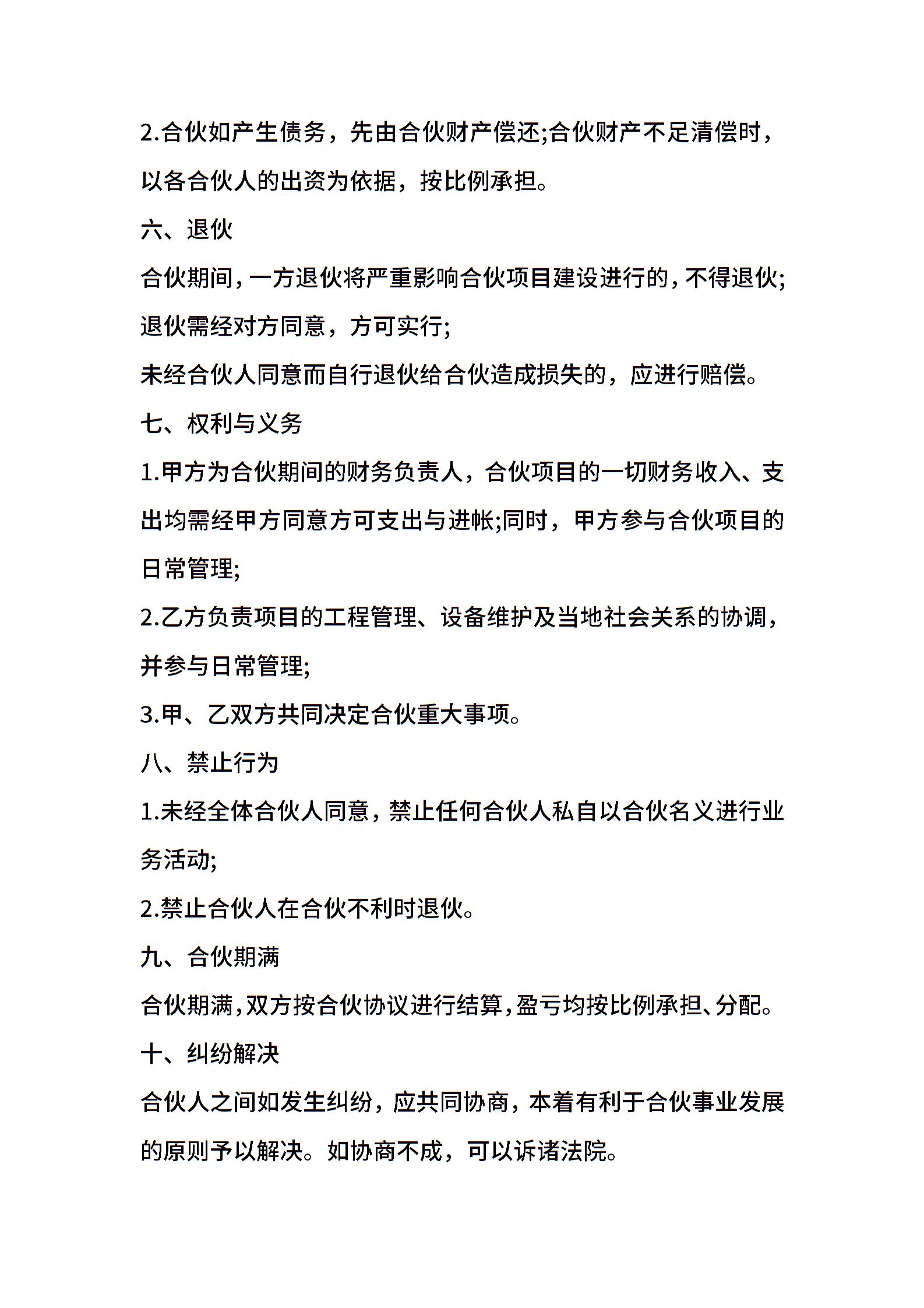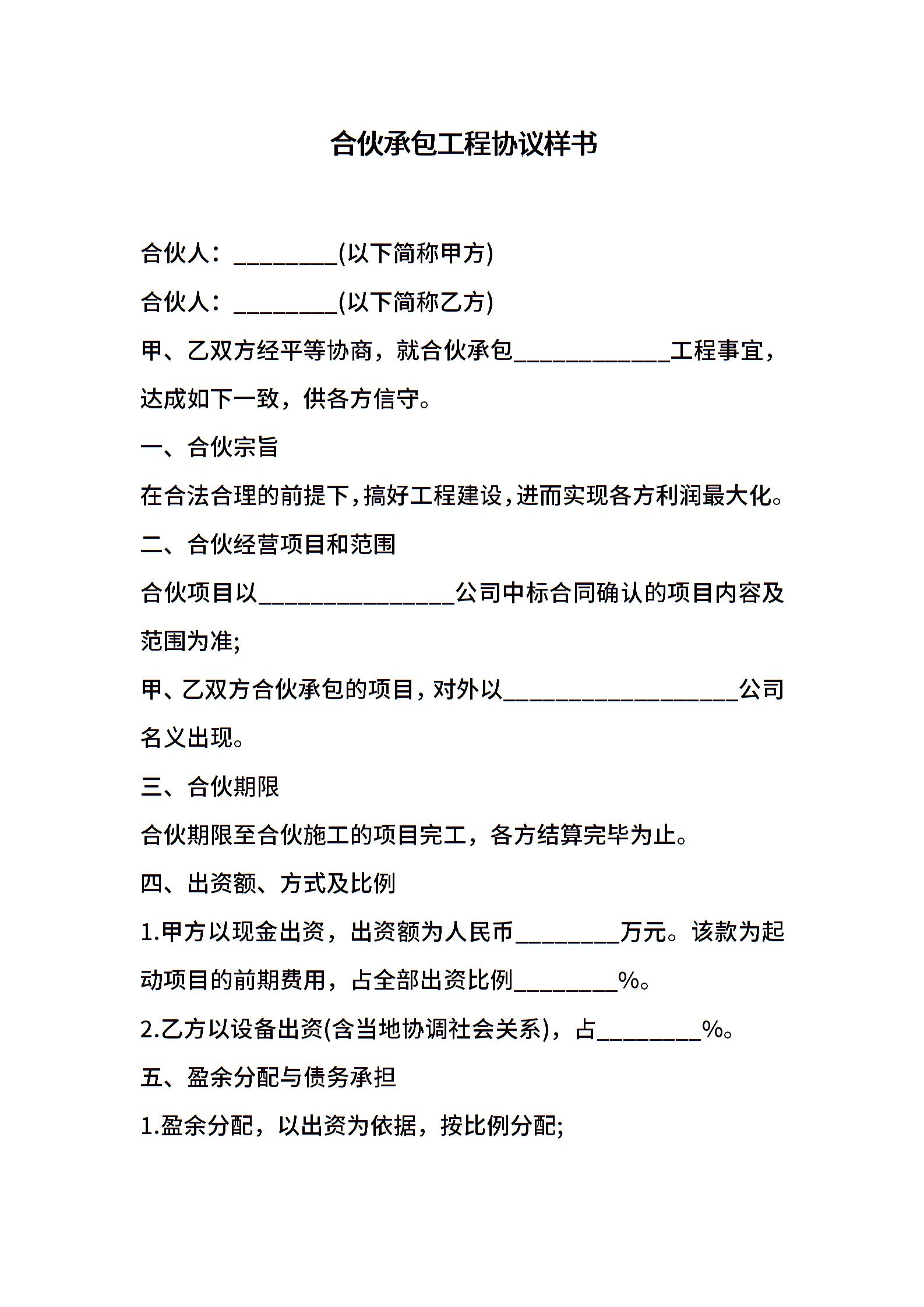 合伙承包工程协议样书