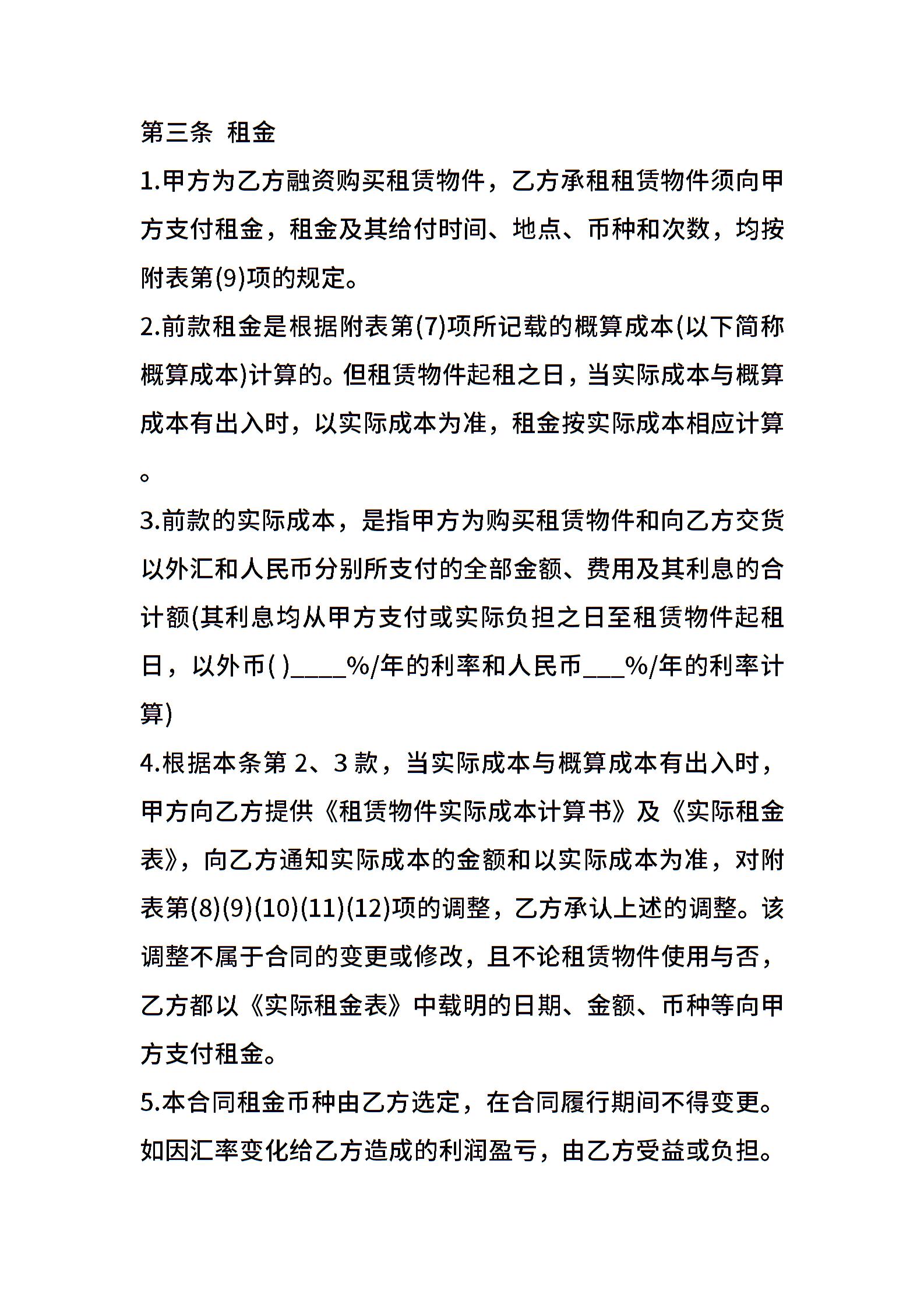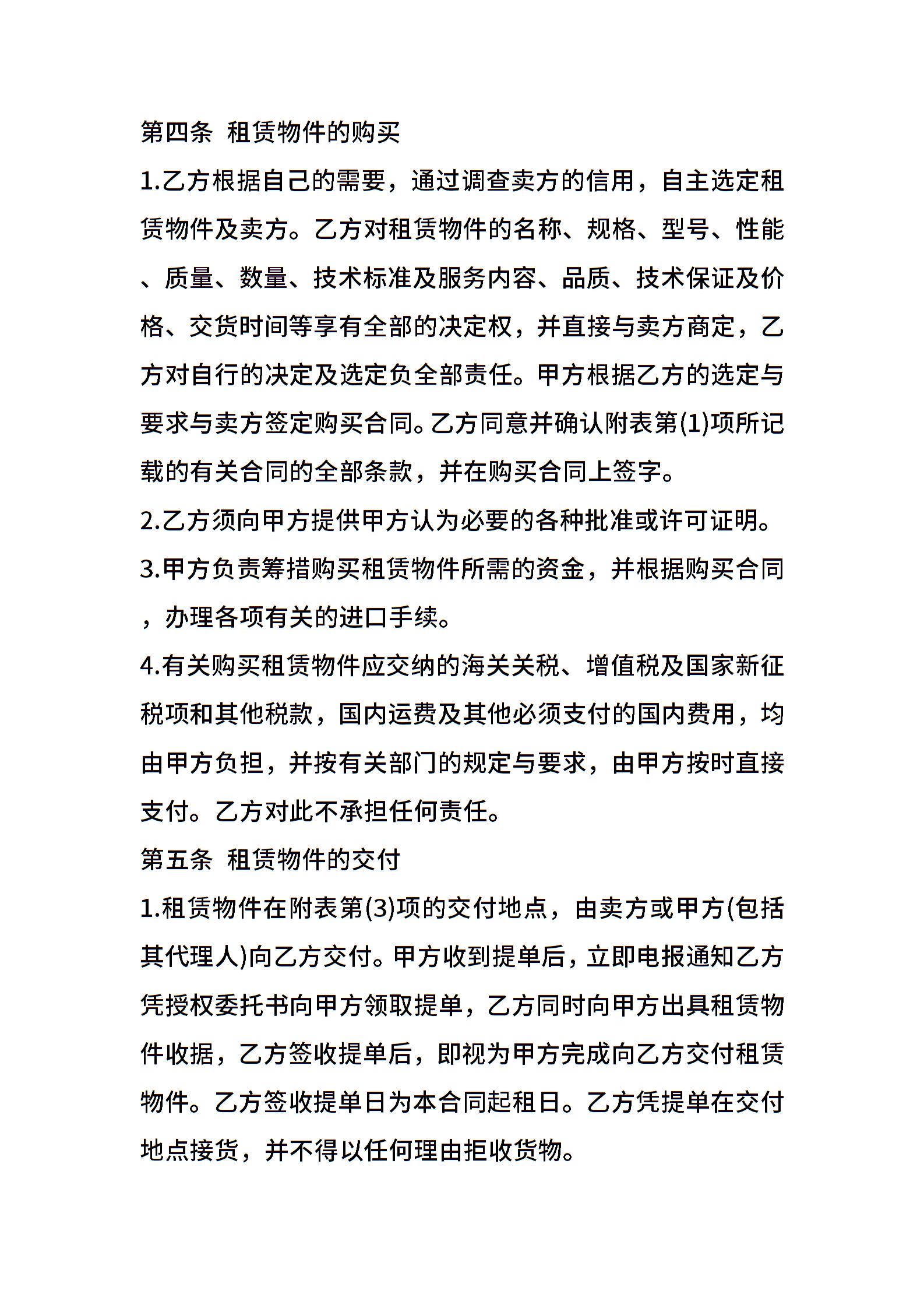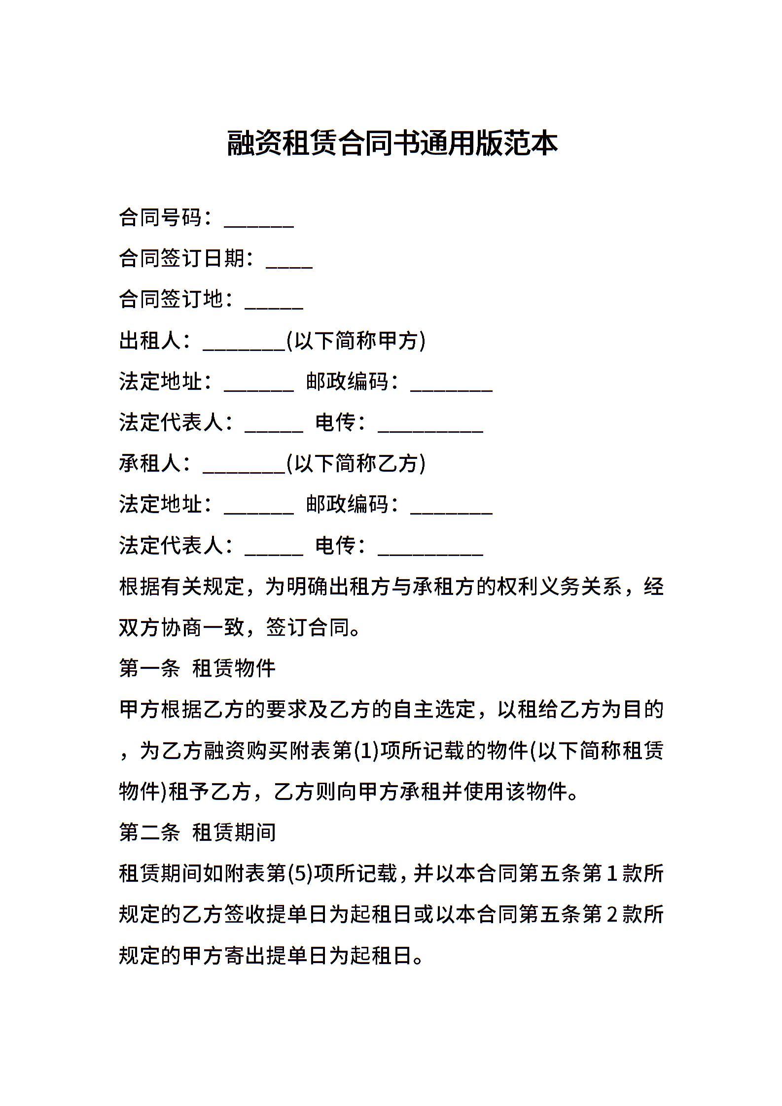融资租赁合同书通用版范本