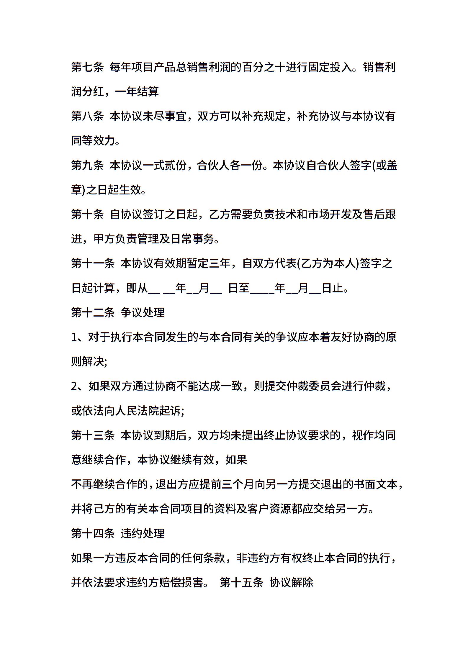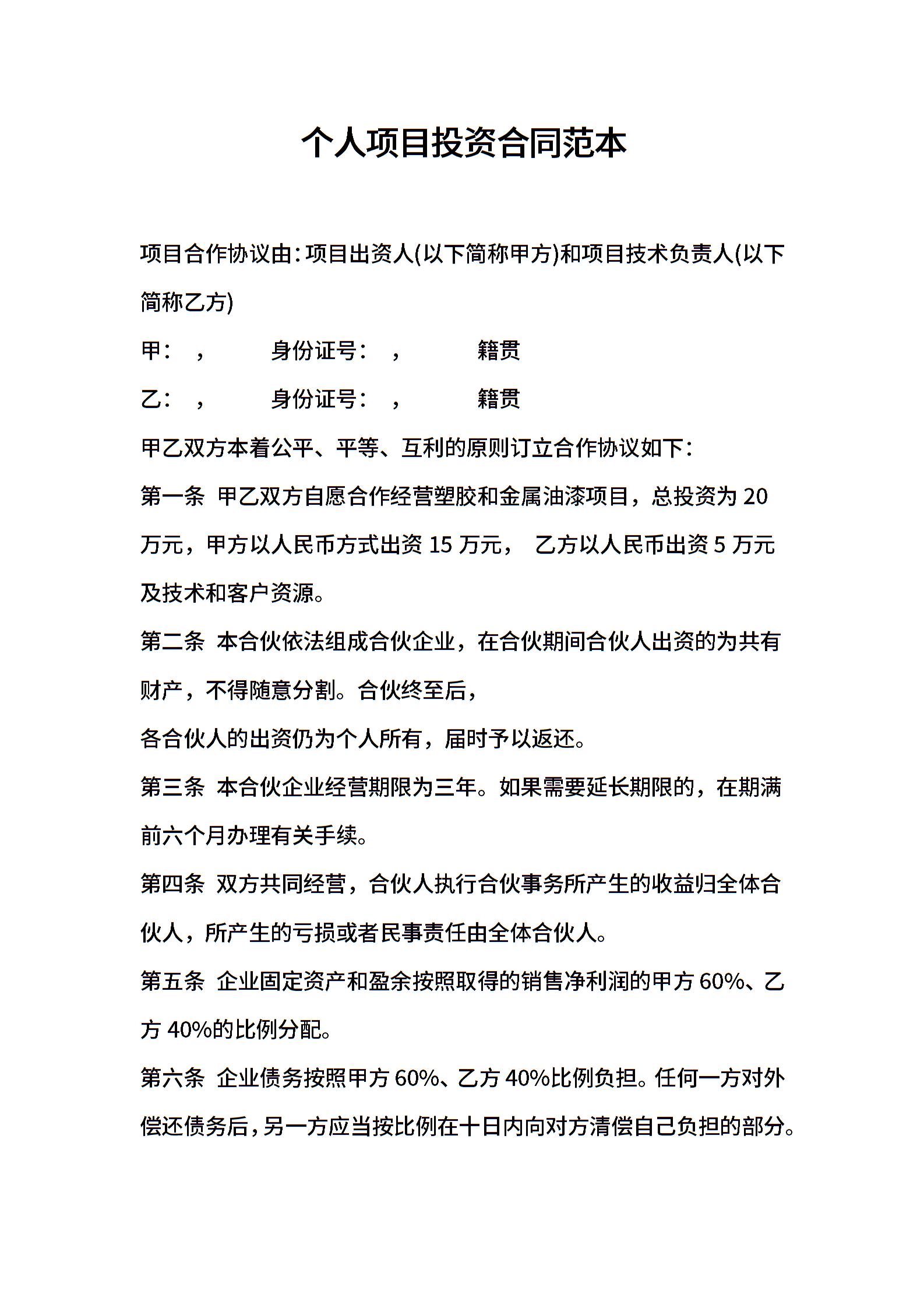 个人项目投资合同范本