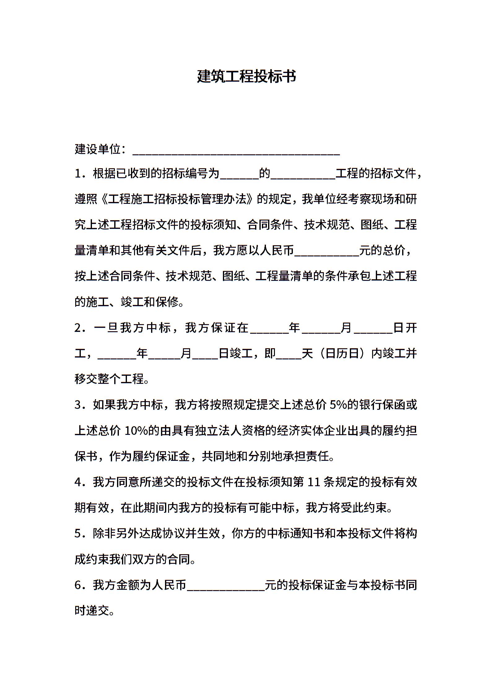 建筑工程投标书