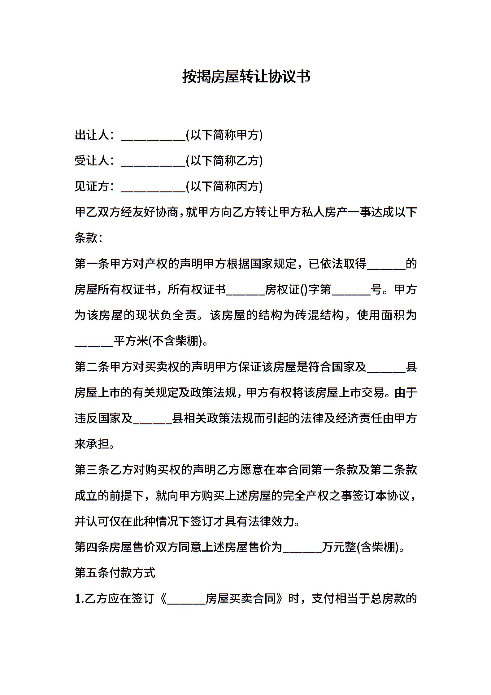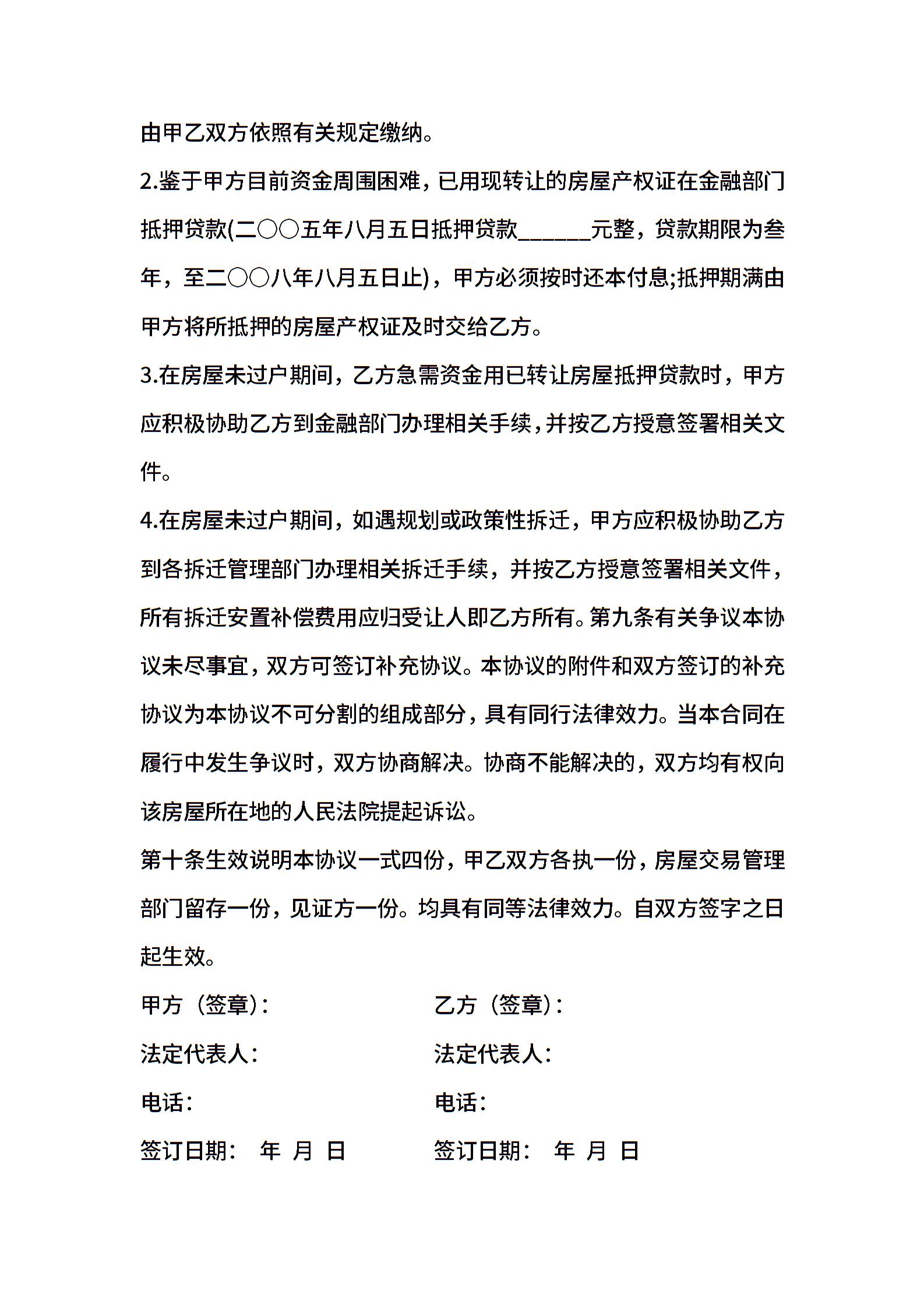 按揭房屋转让协议书