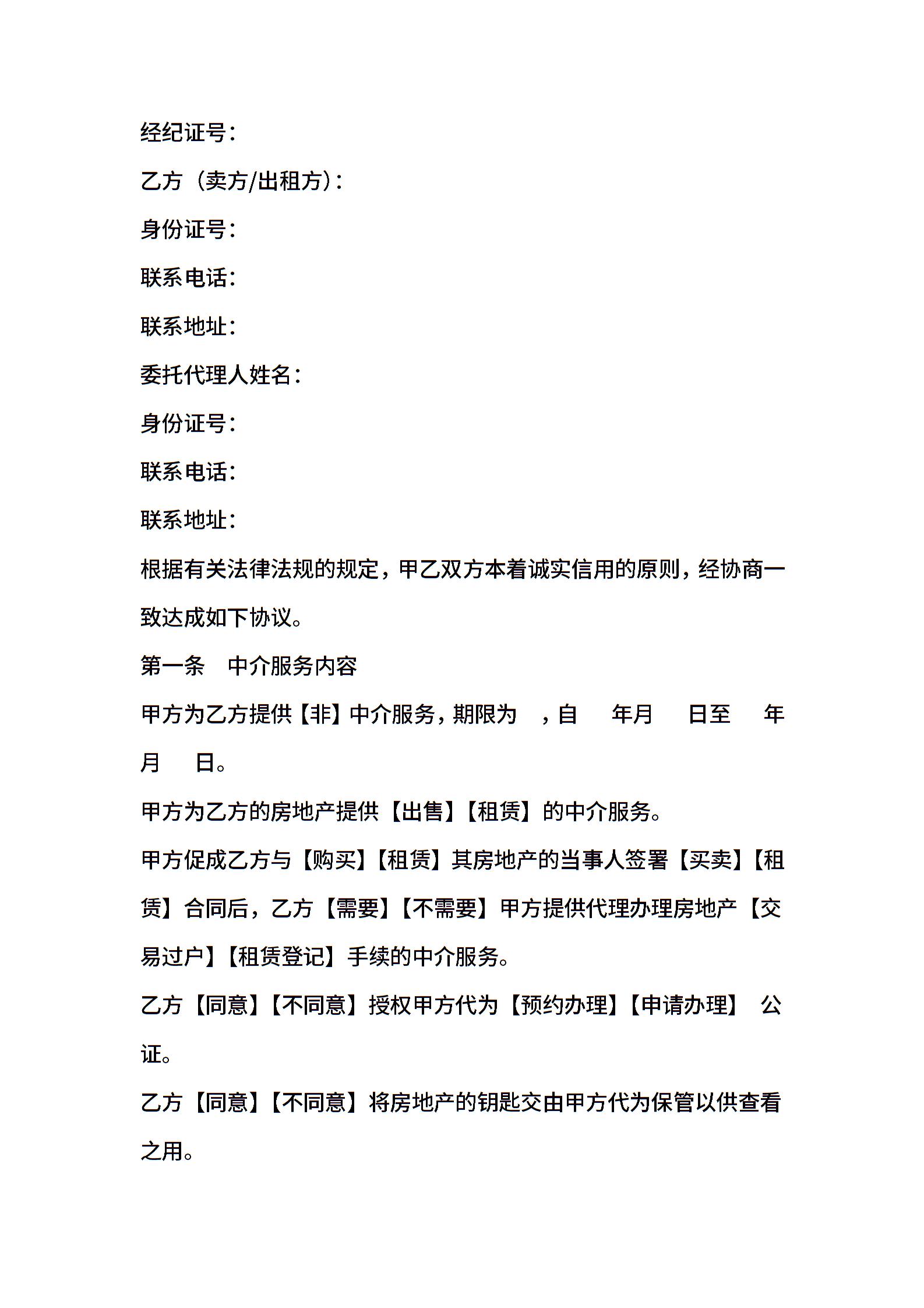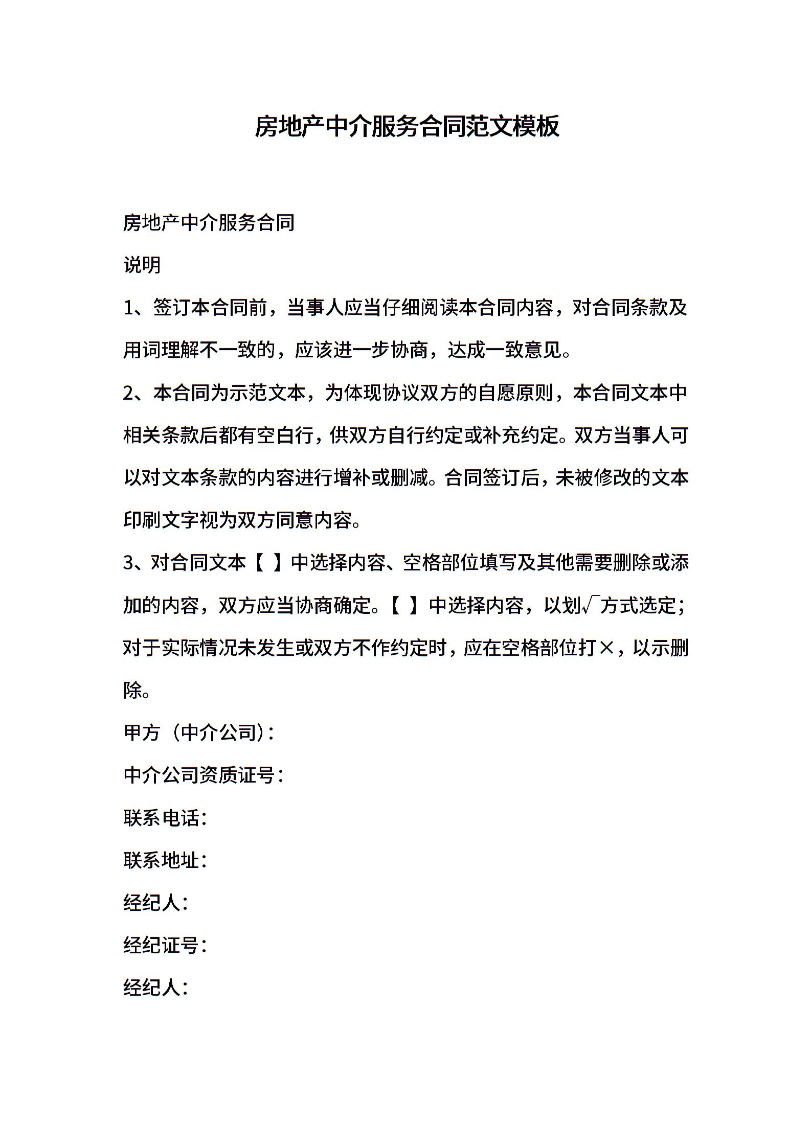 房地产中介服务合同范文模板