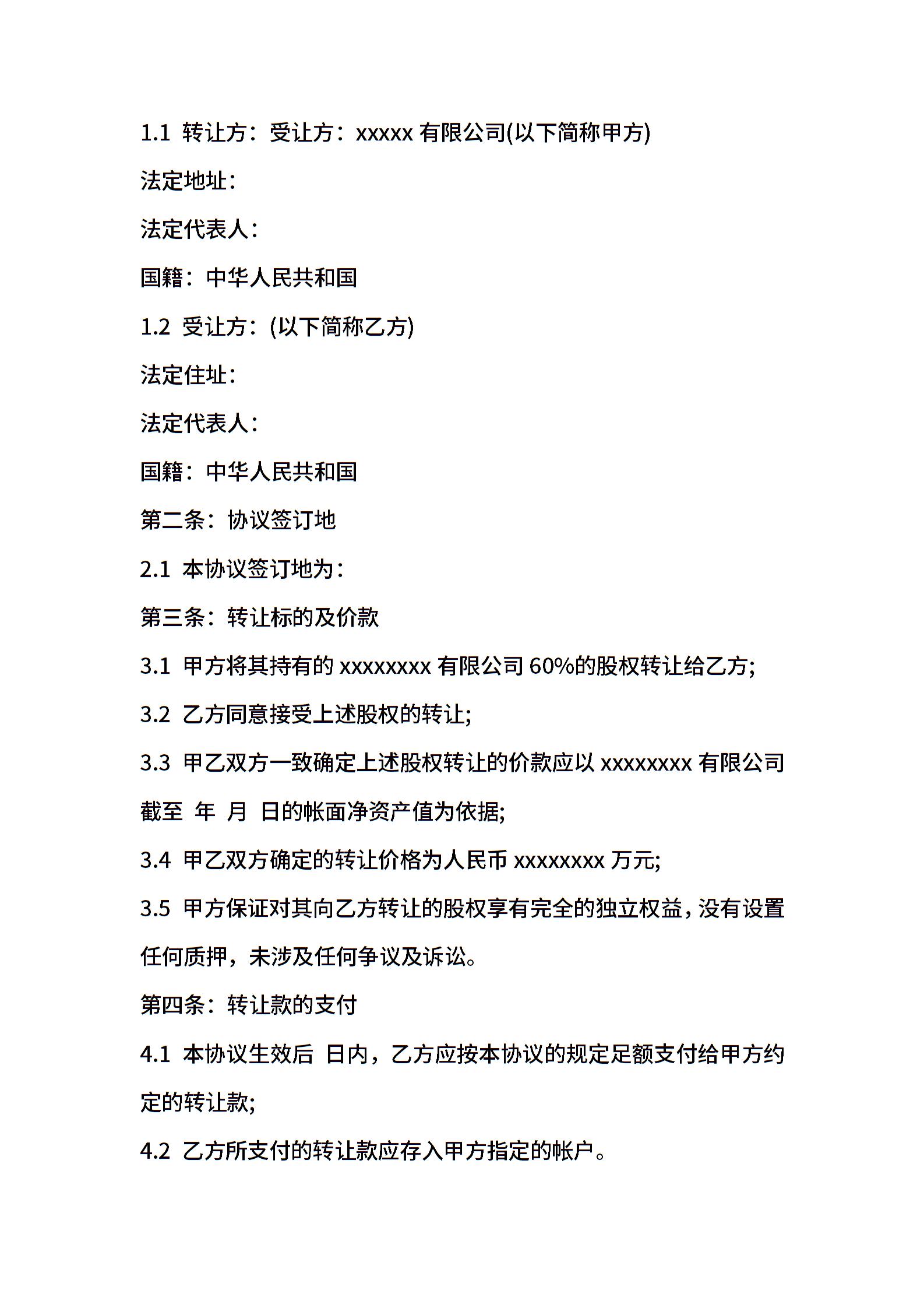 当前位置:量子办公 > 合同模板 > 股权转让协议 >