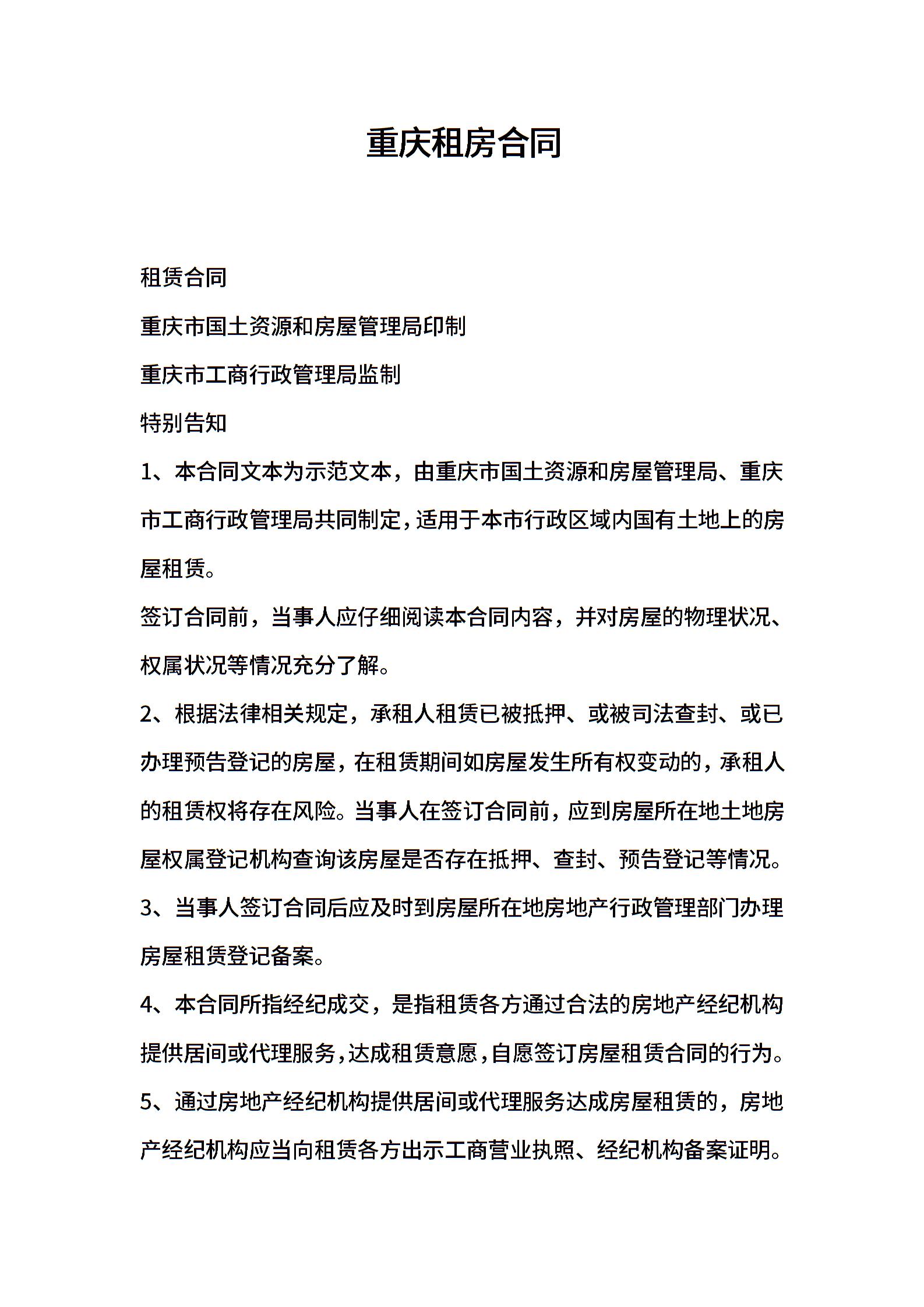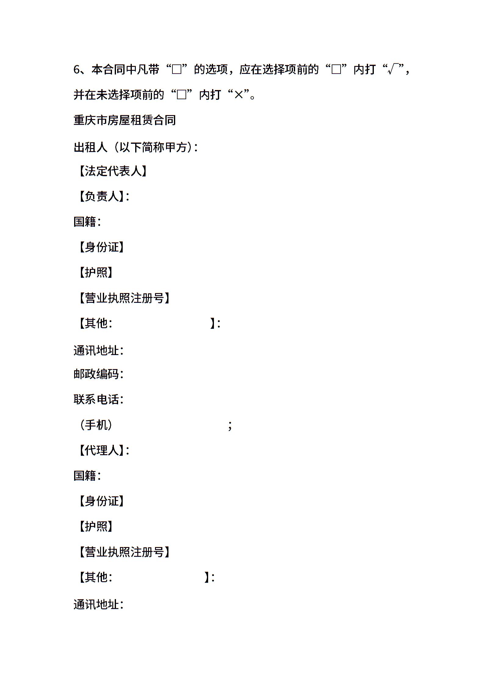 2021年重庆租房合同