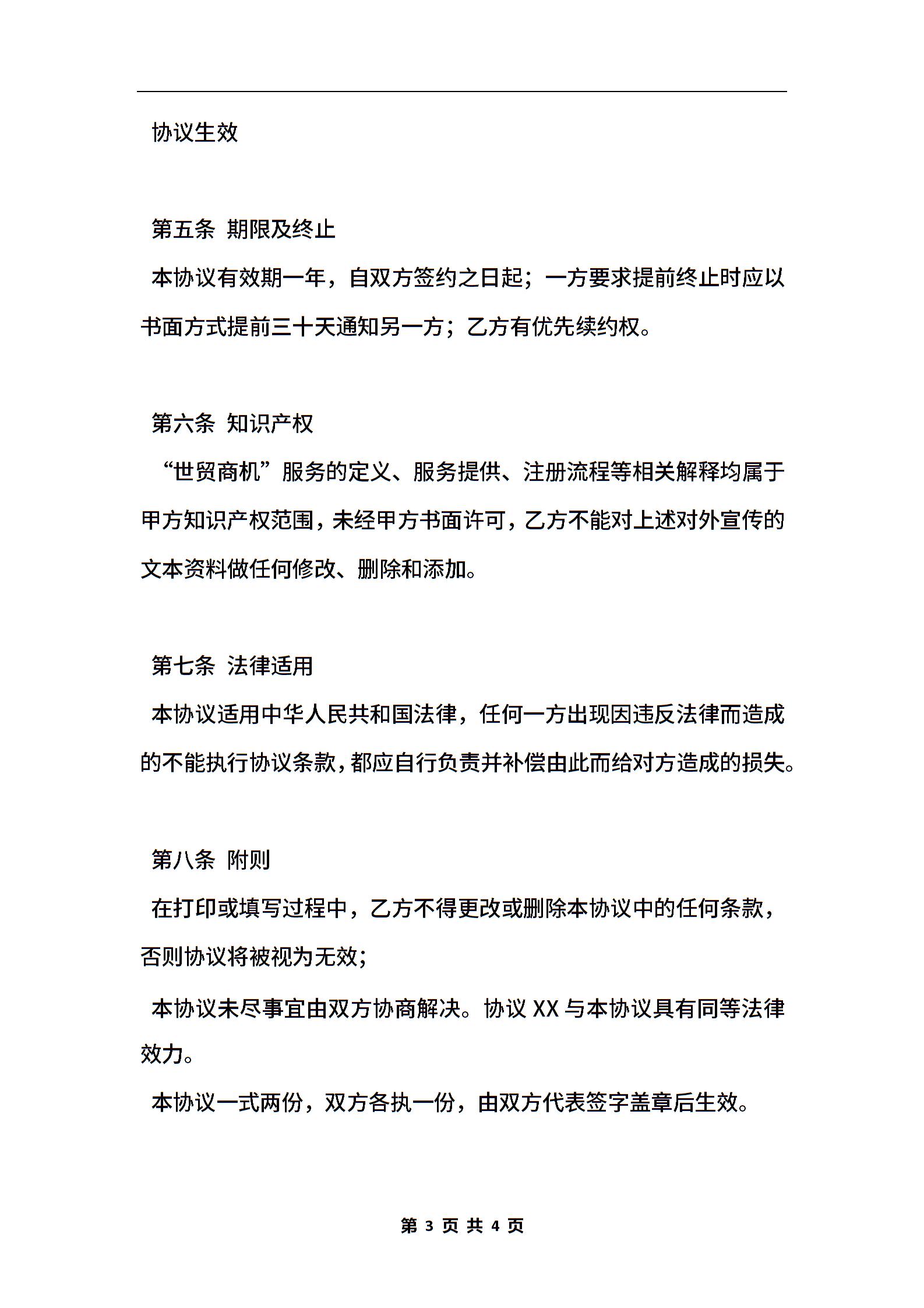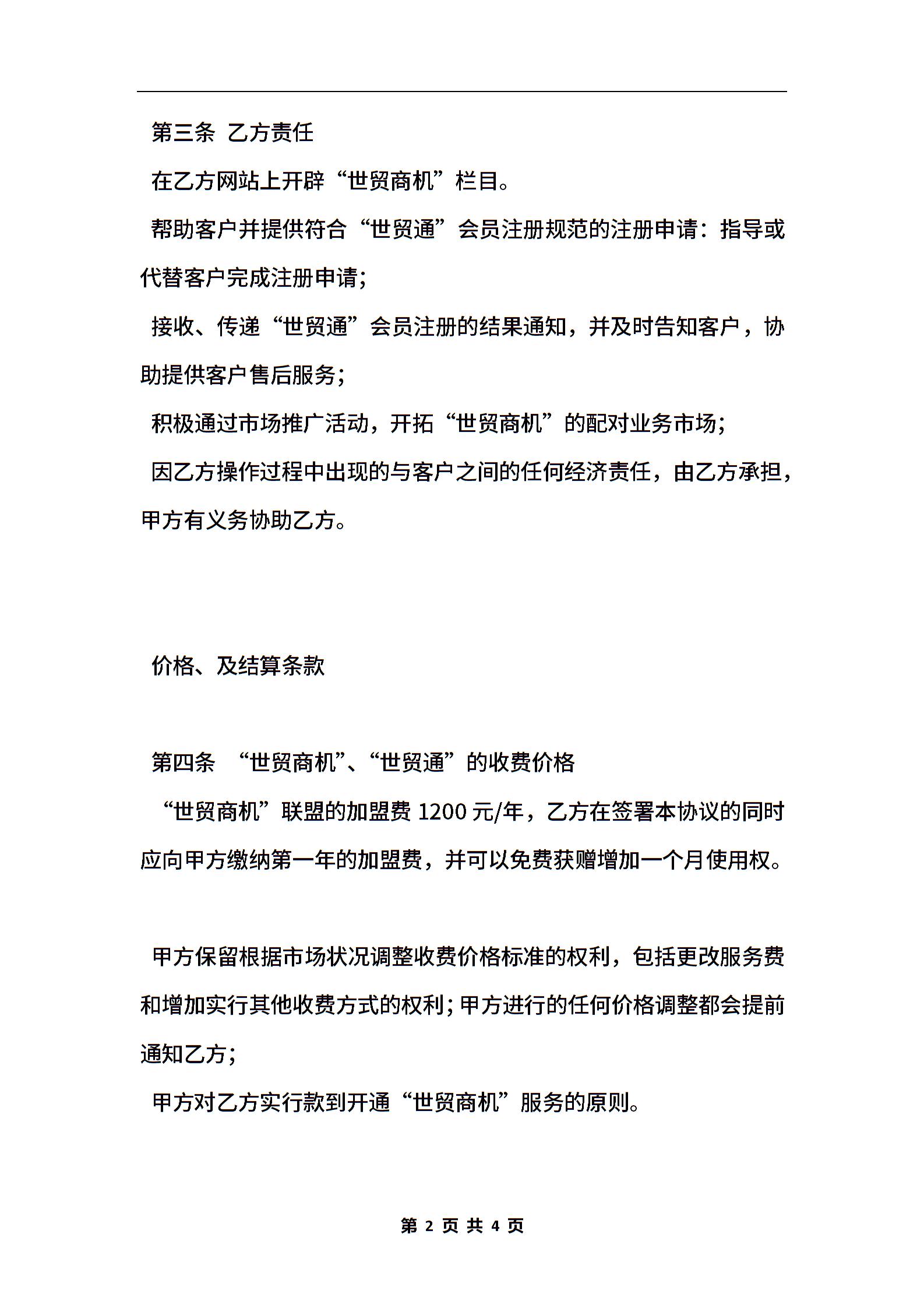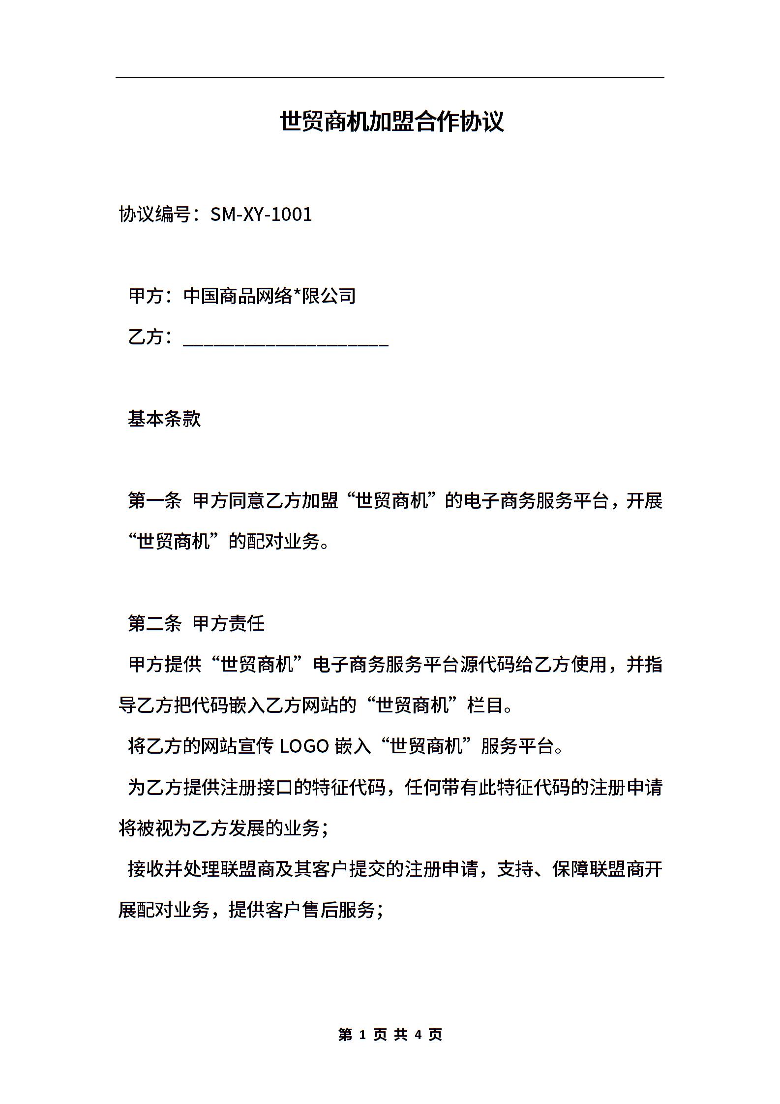 世贸商机加盟合作协议