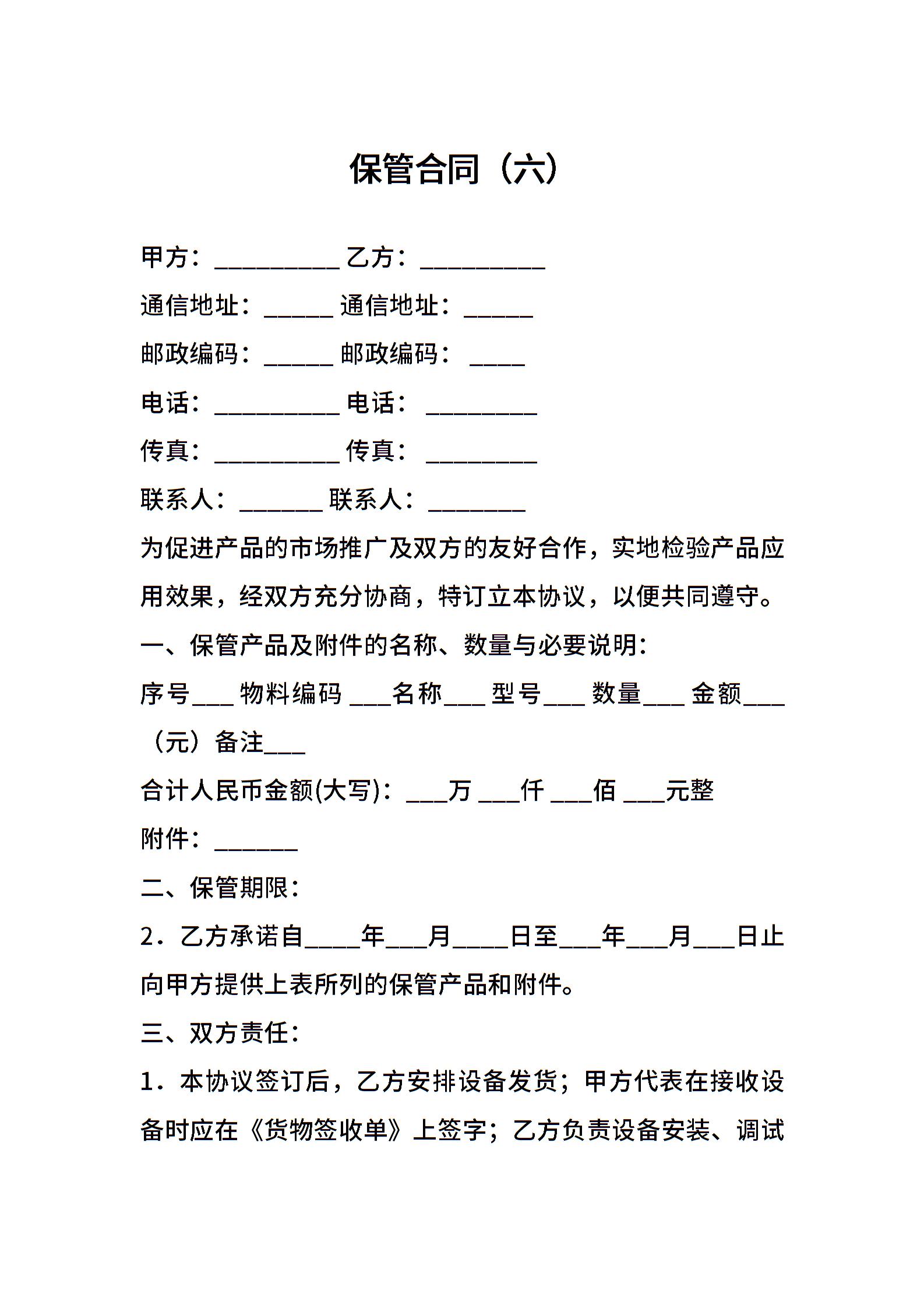 当前位置:量子办公 > 合同模板 > 保管合同 >