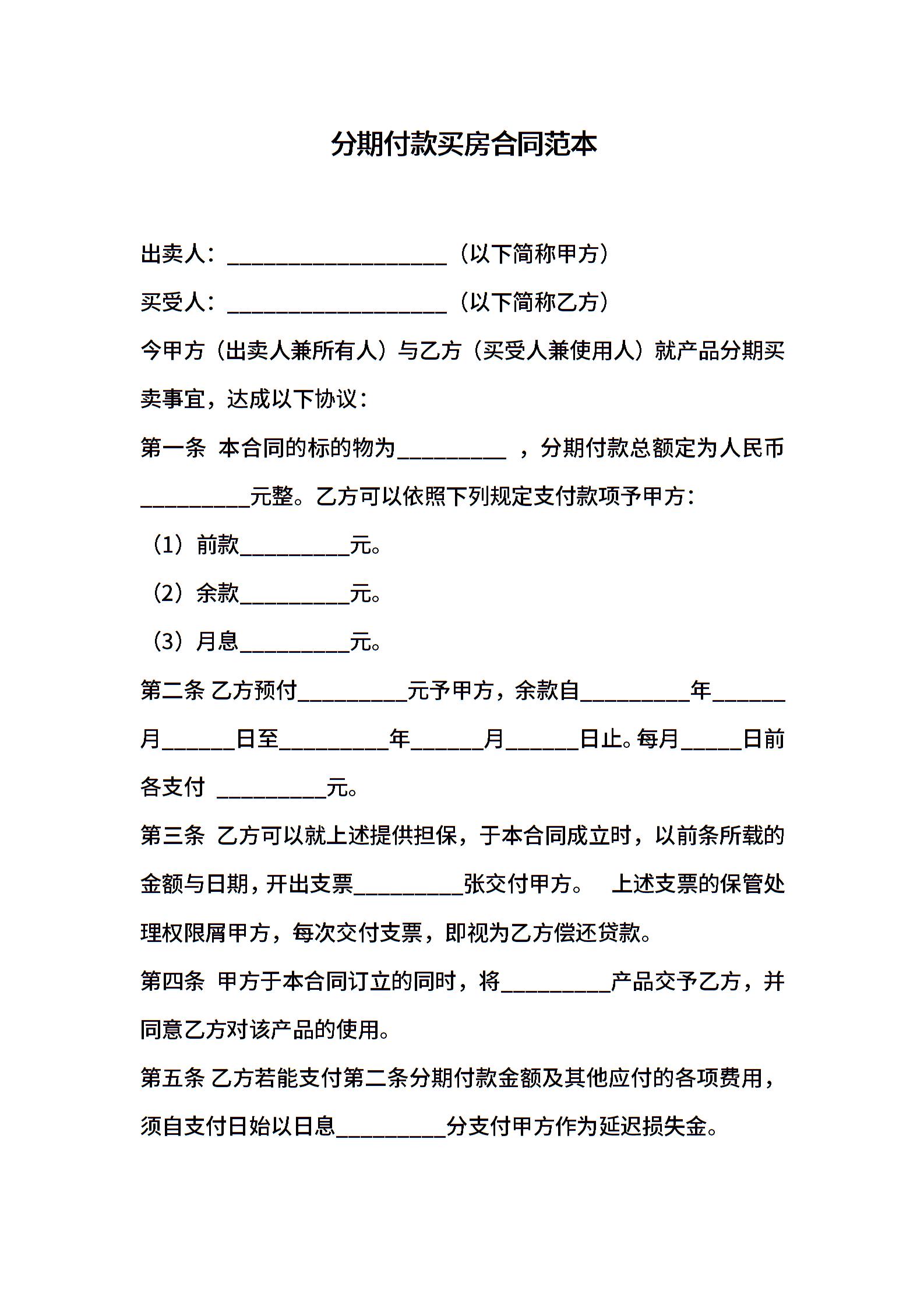 分期付款买房合同范本