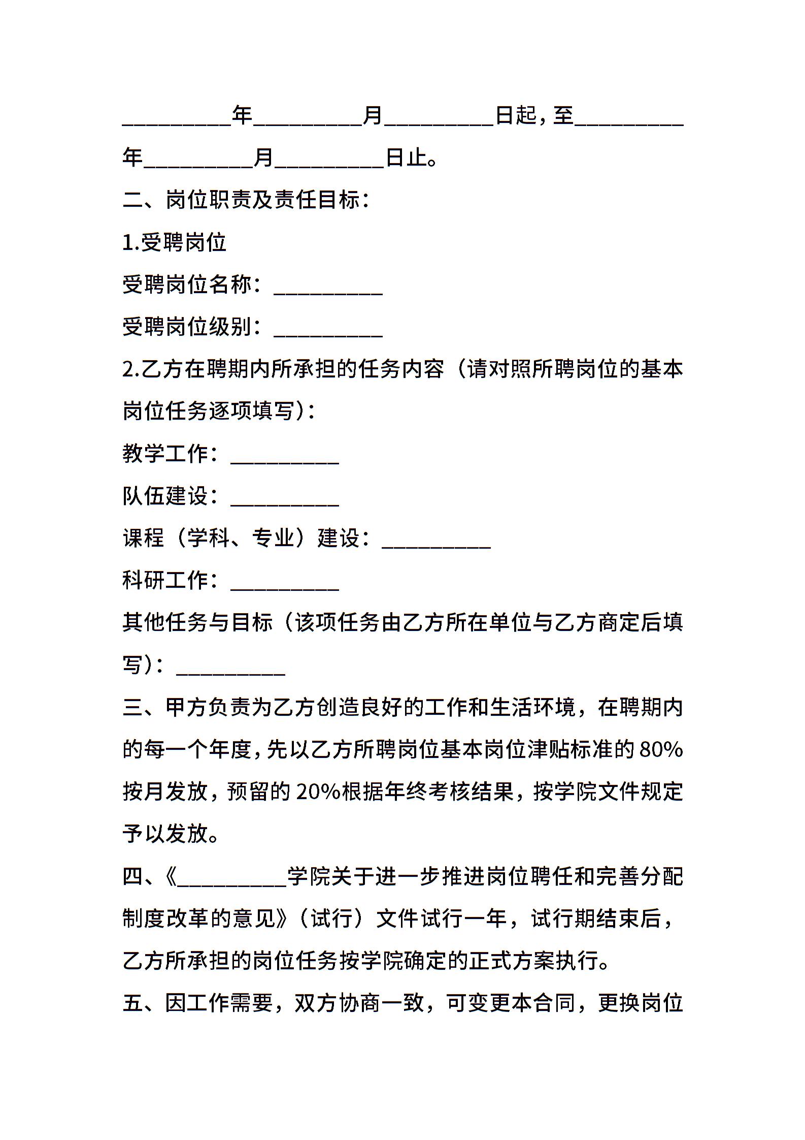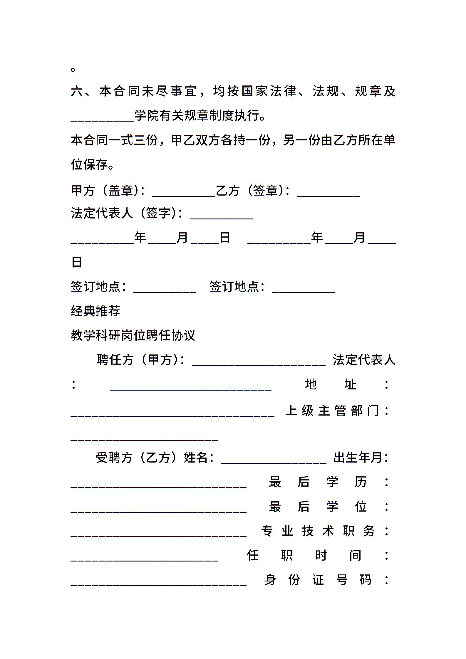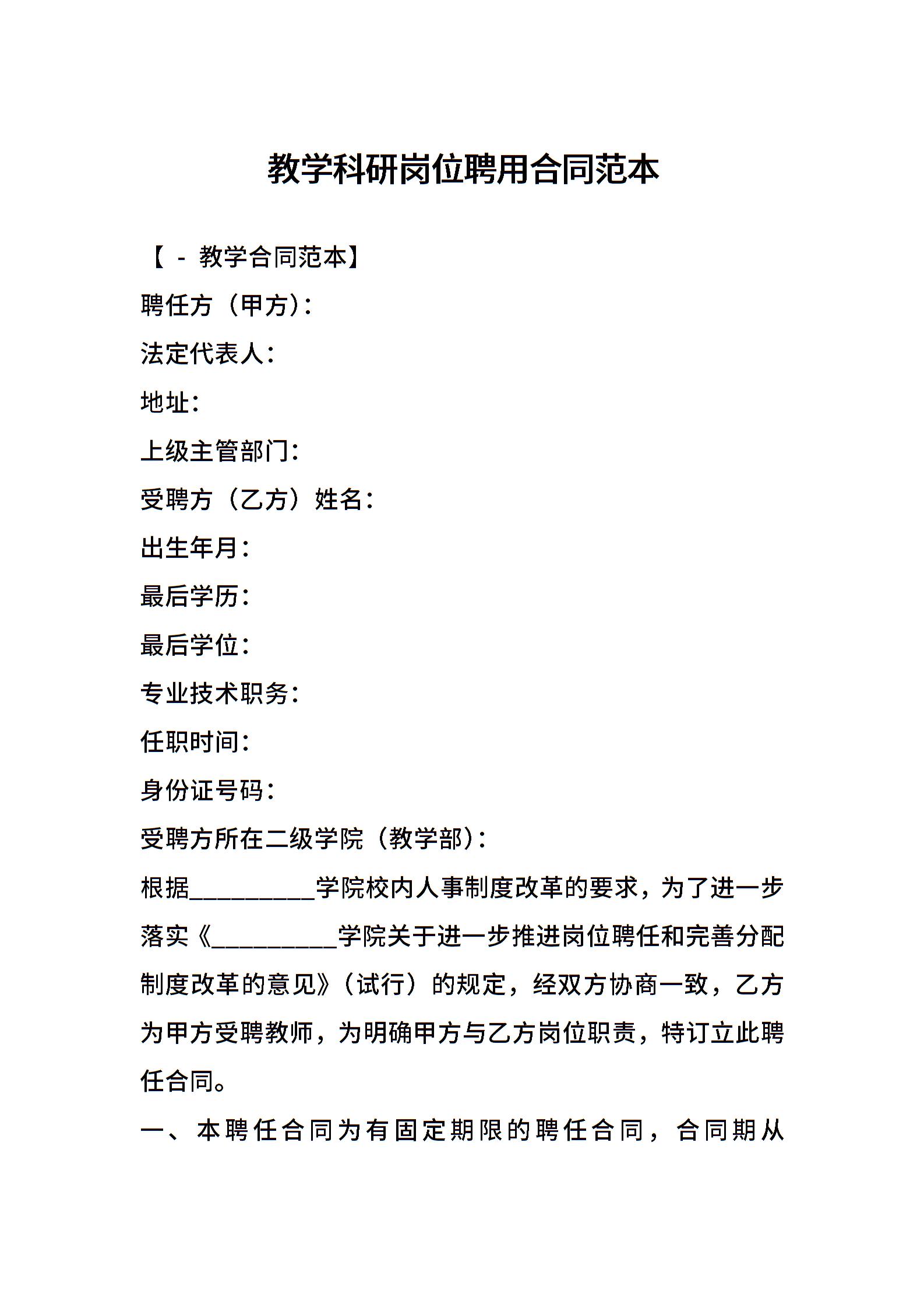 教学科研岗位聘用合同范本