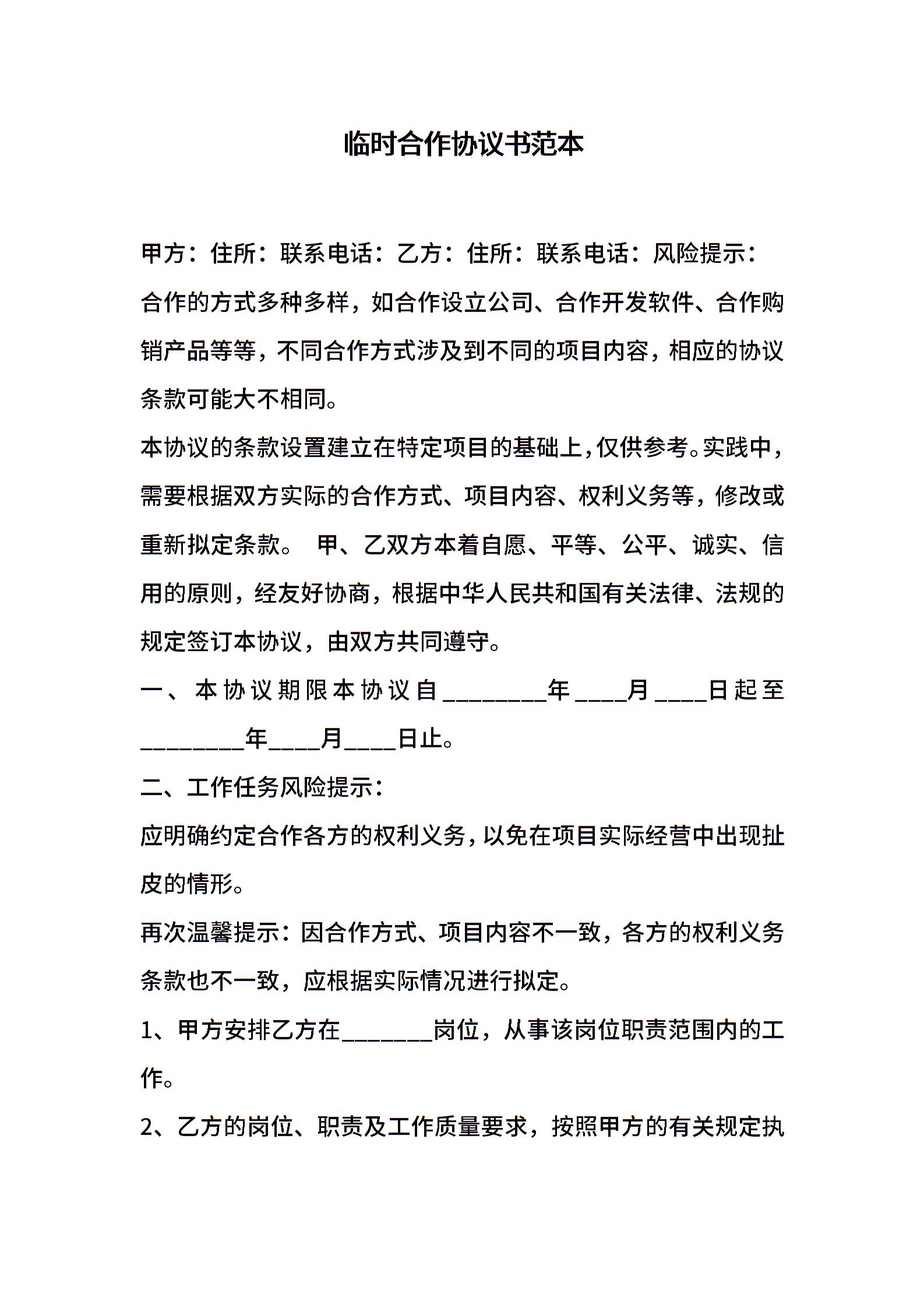 当前位置:量子办公 > 合同模板 > 合作合同 >