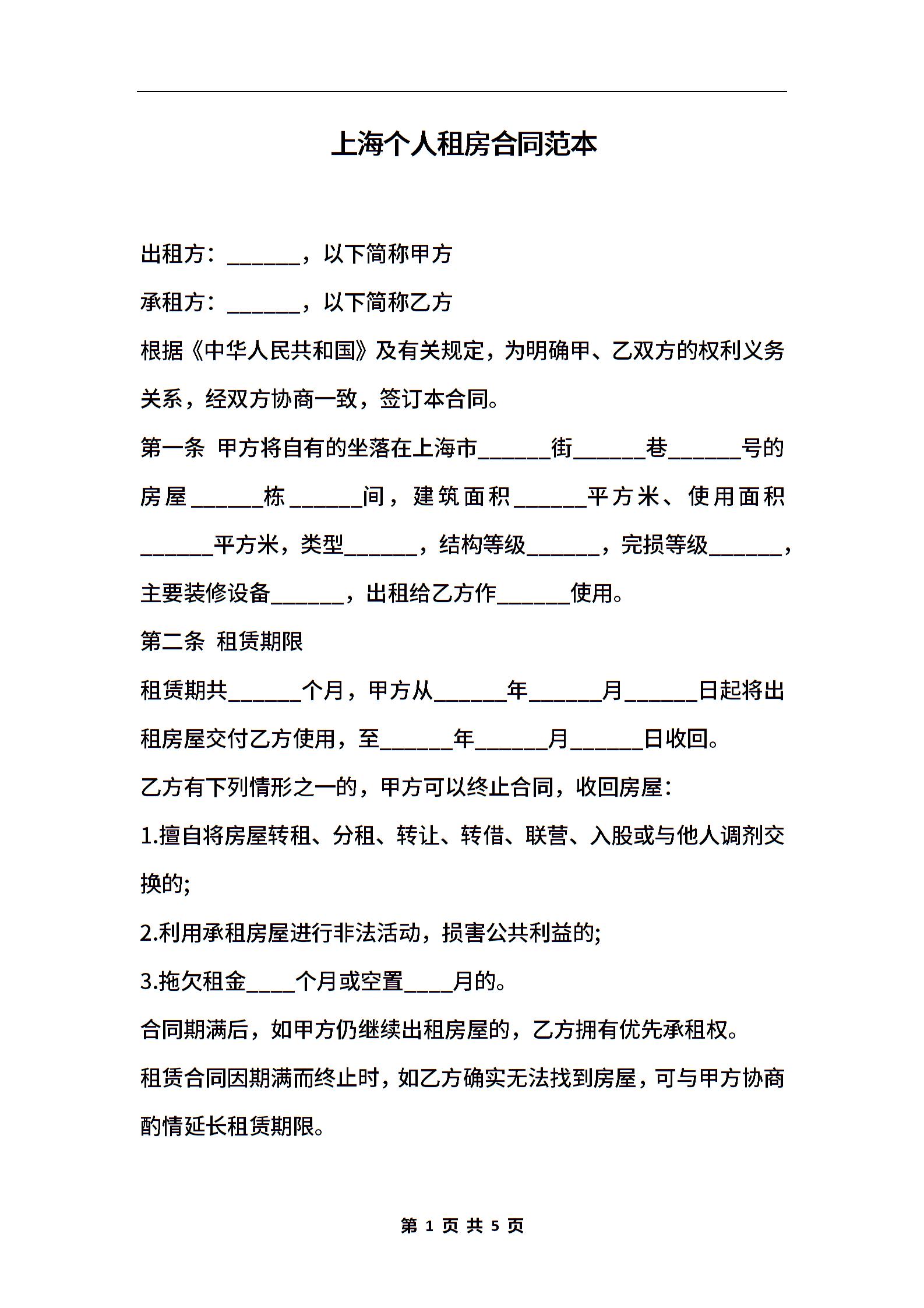 上海个人租房合同范本