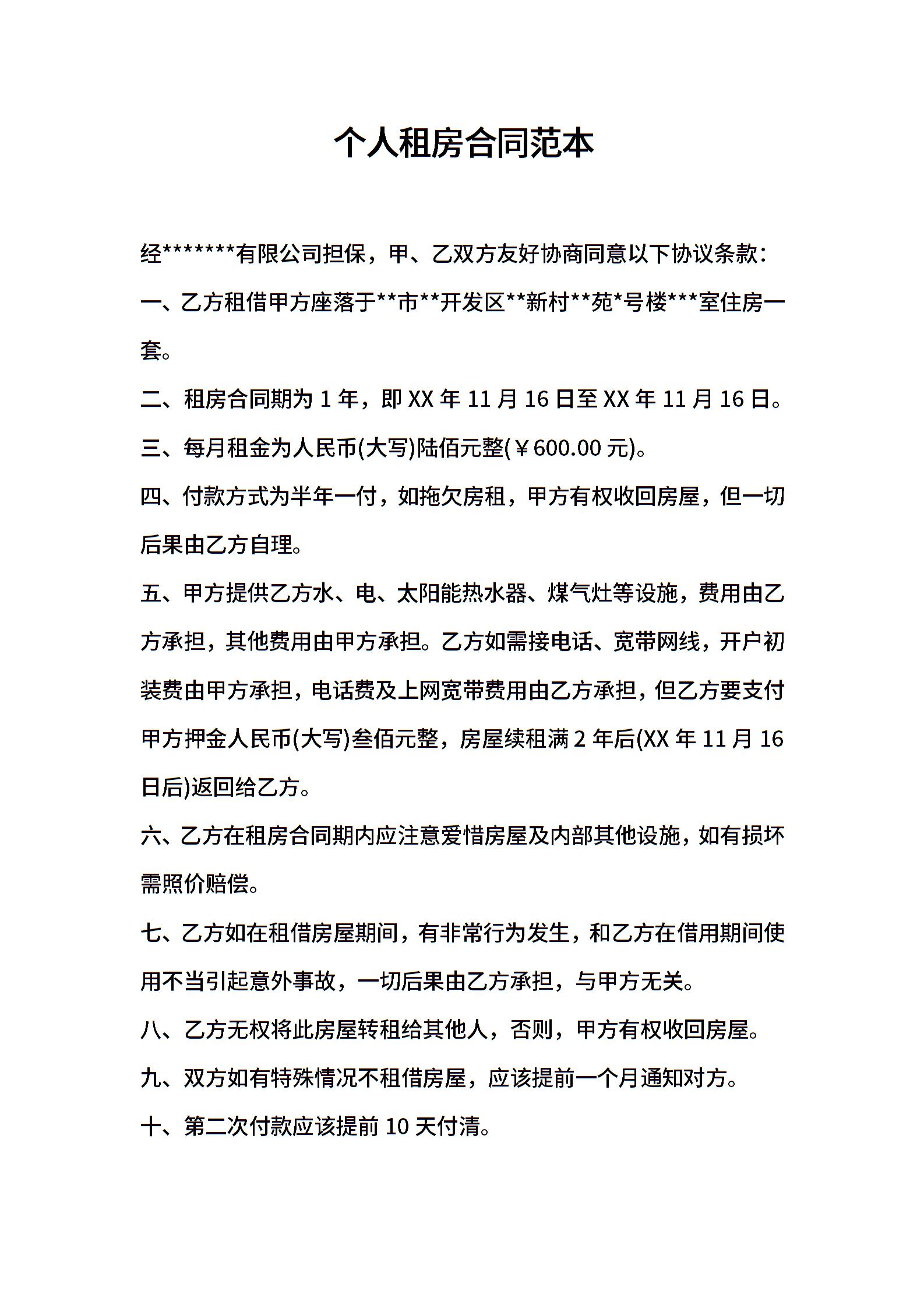 2021年个人租房合同范本