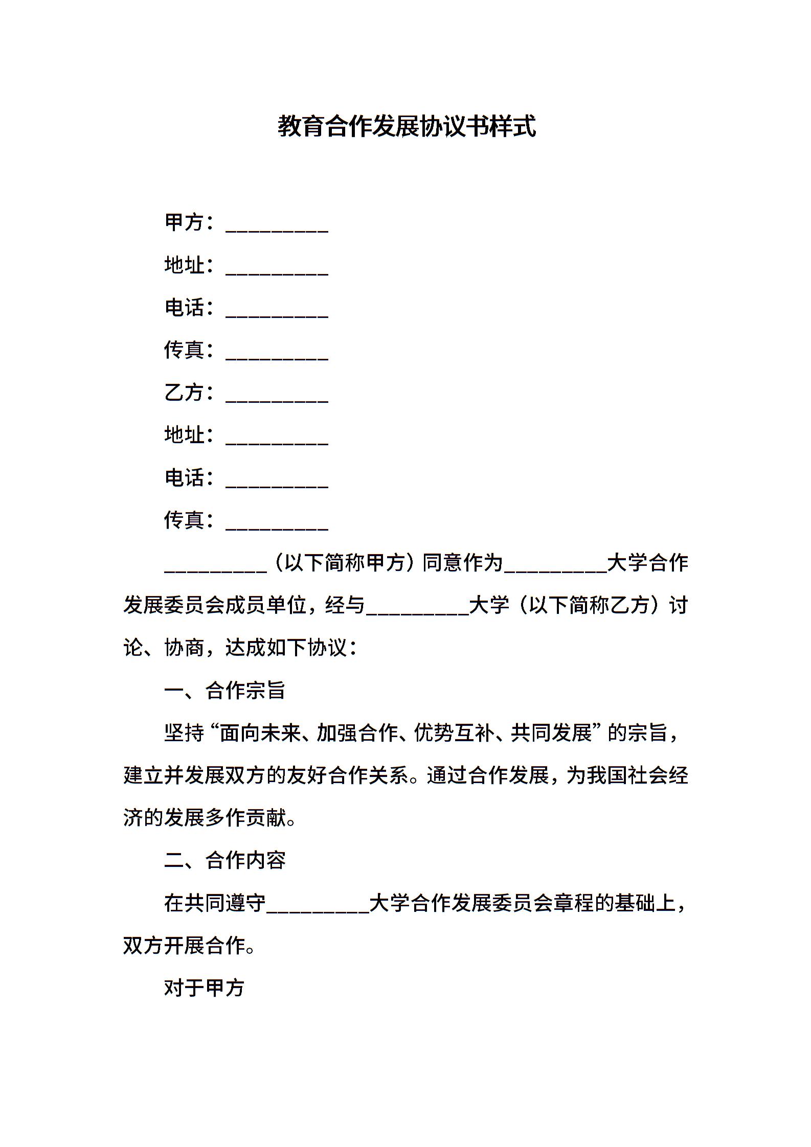 教育合作发展协议书样式