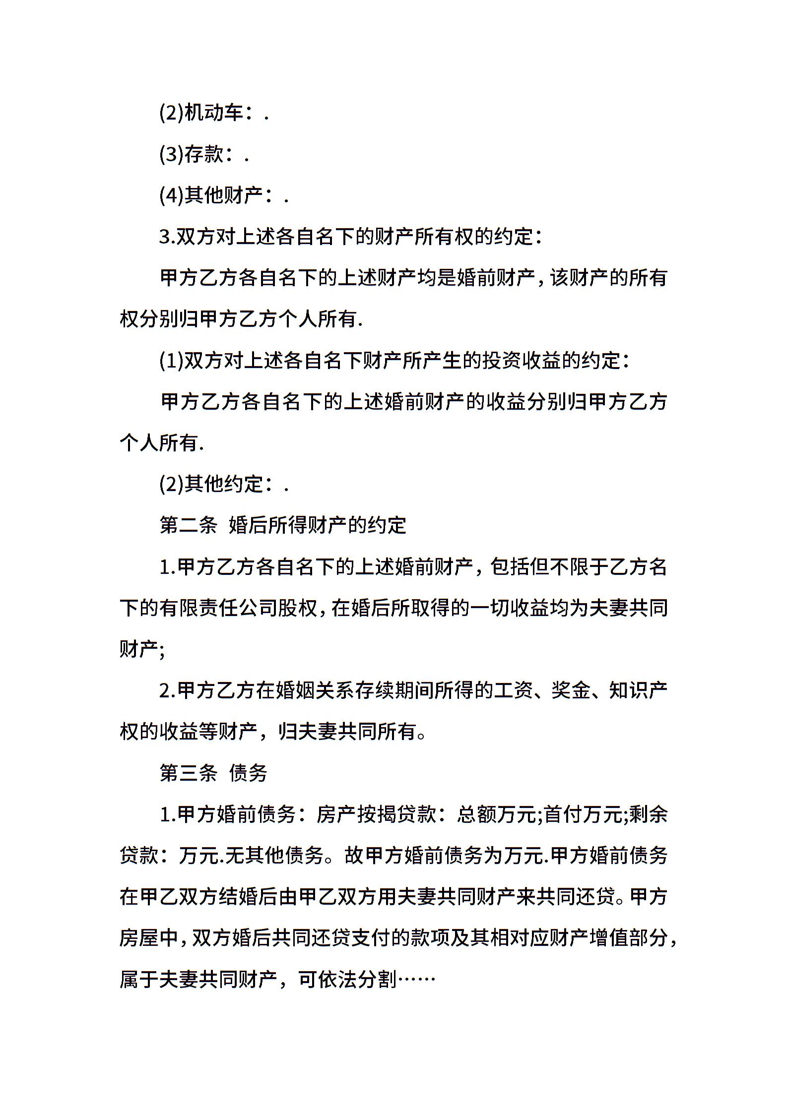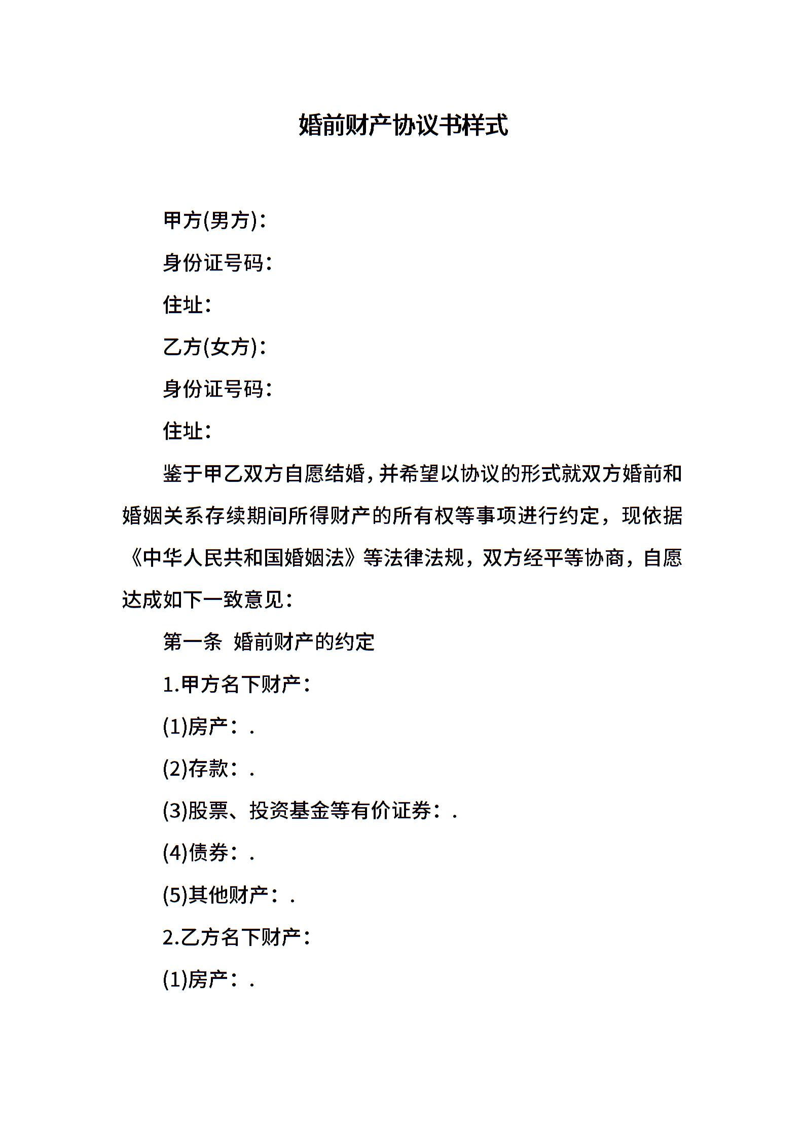 婚前财产协议书样式