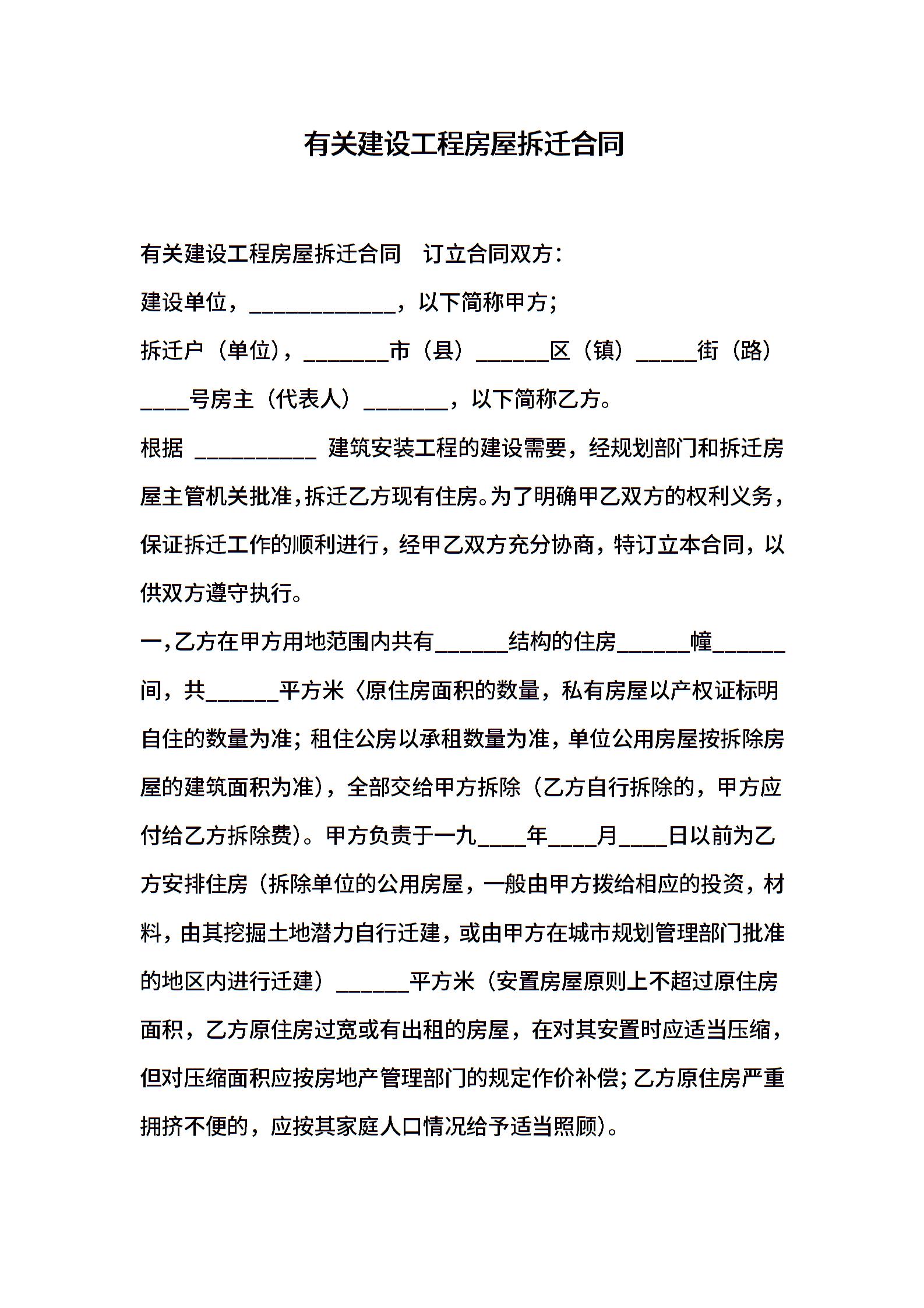 有关建设工程房屋拆迁合同