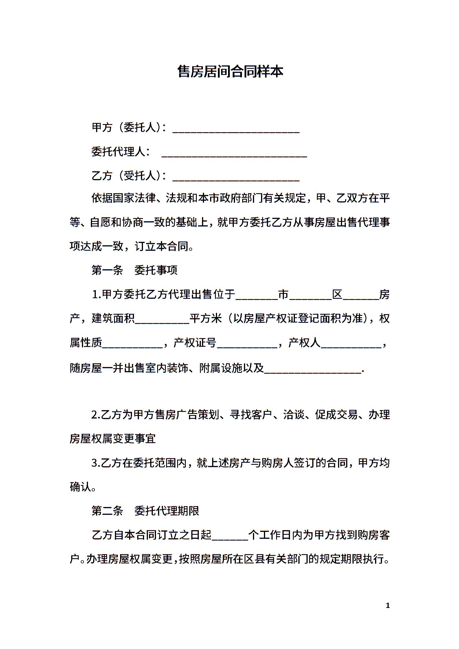 售房居间合同样本