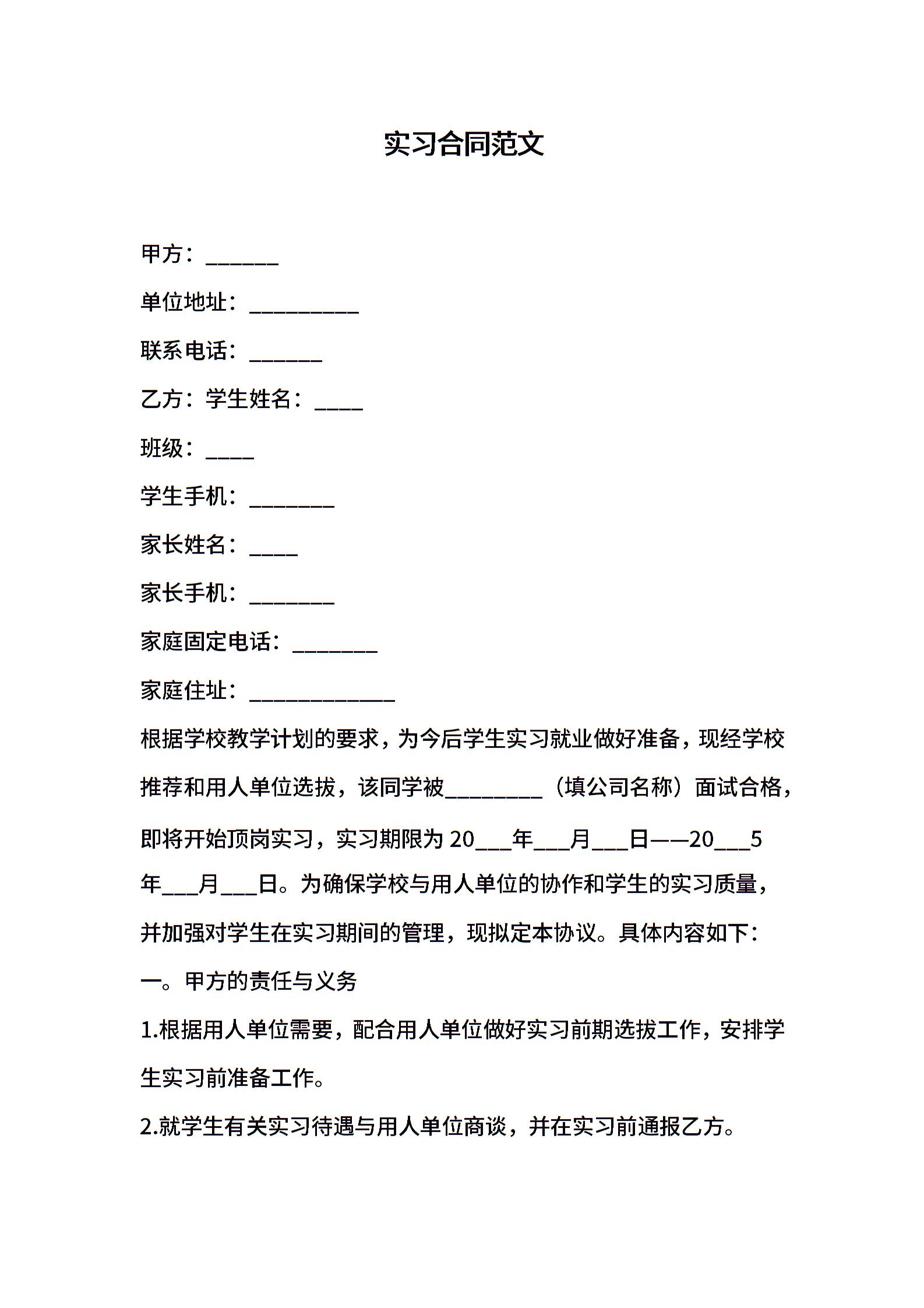 实习合同范文