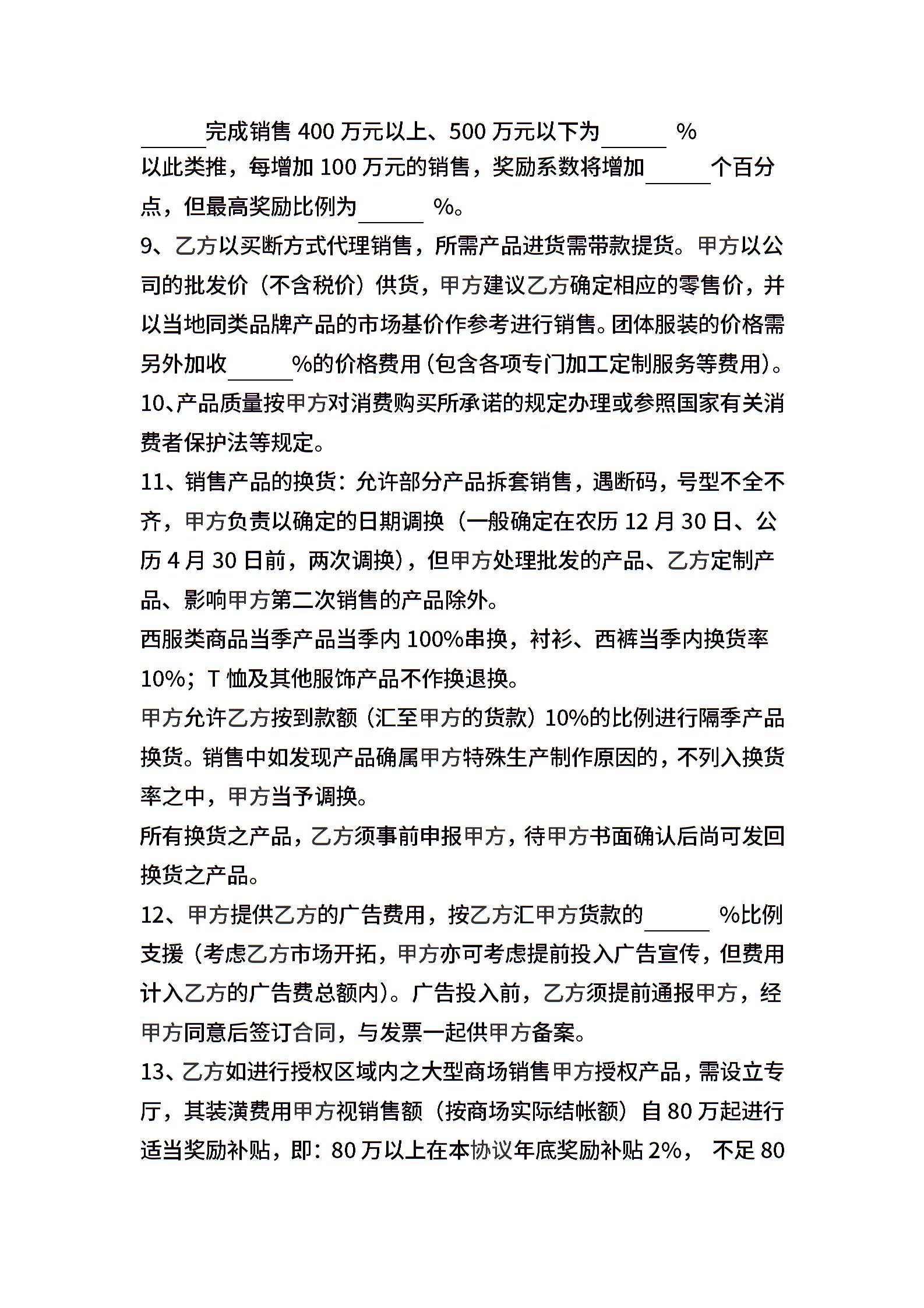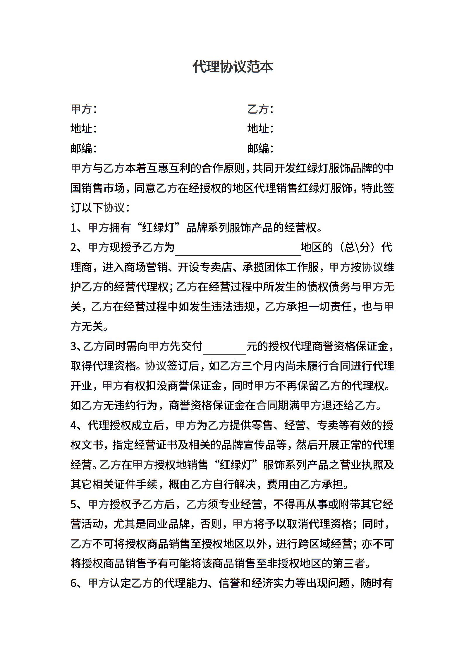 服装代理协议(范本)
