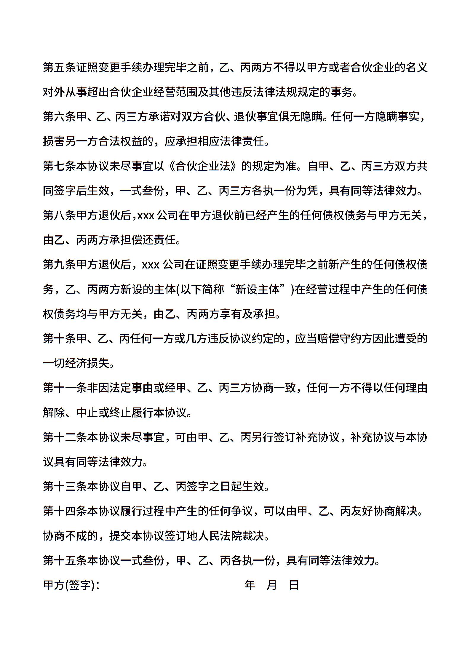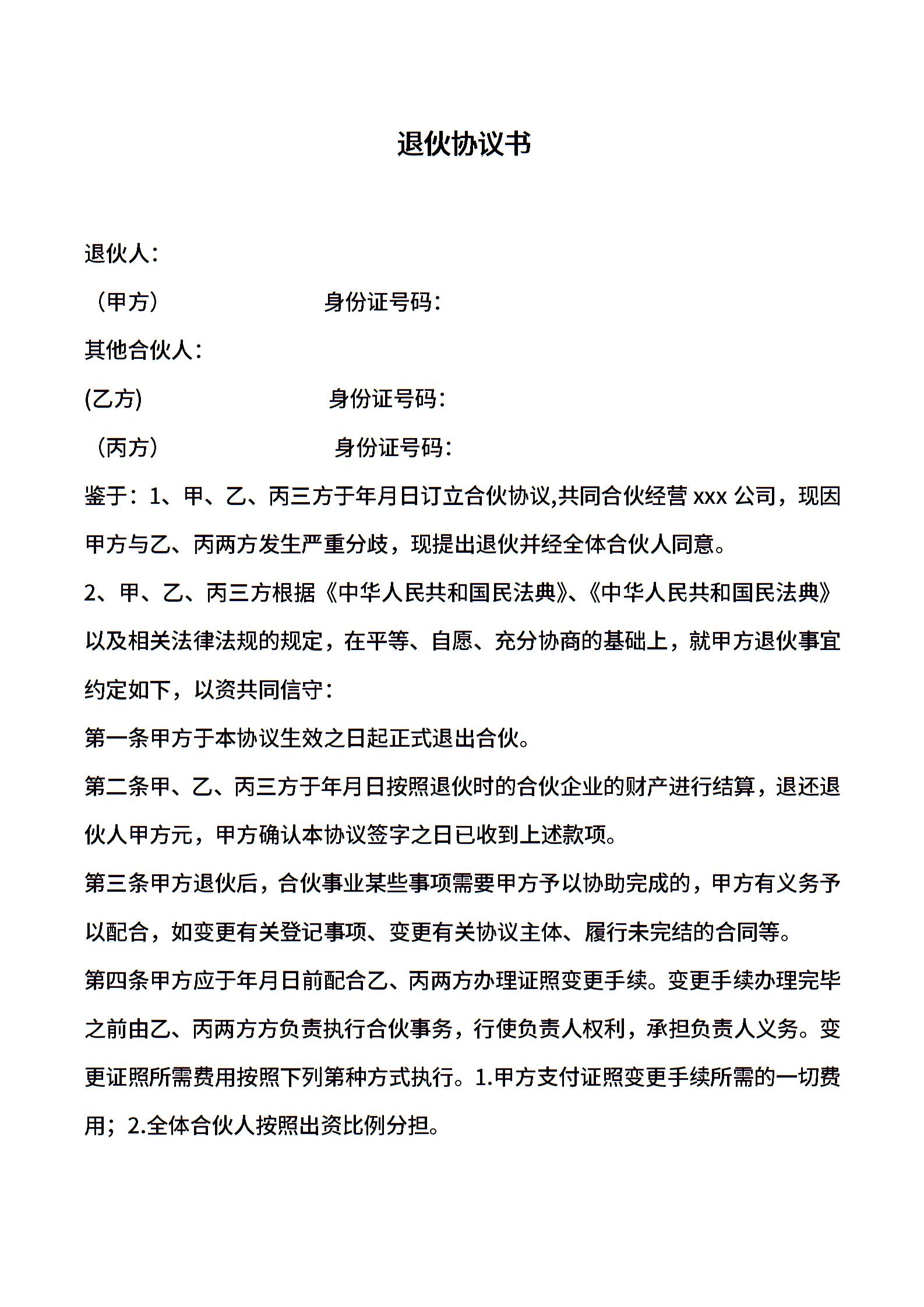 合伙人退伙协议书